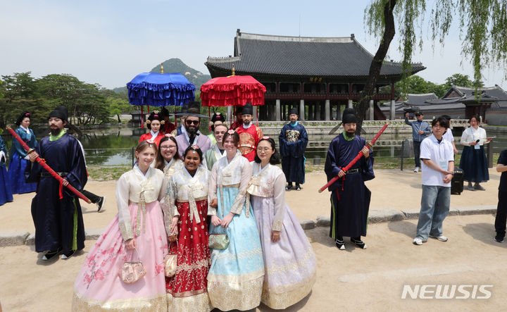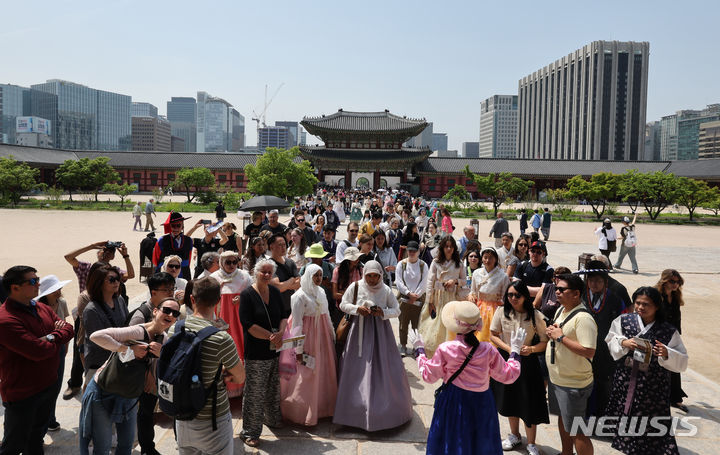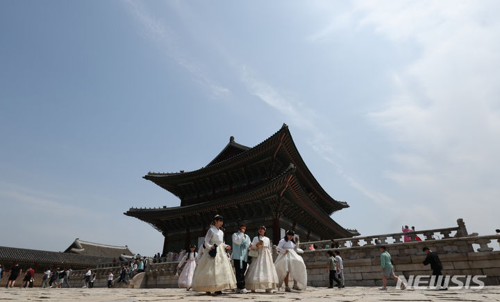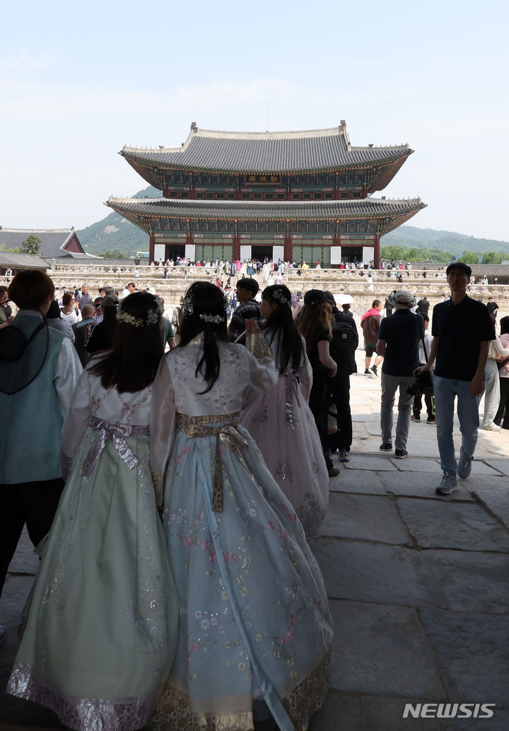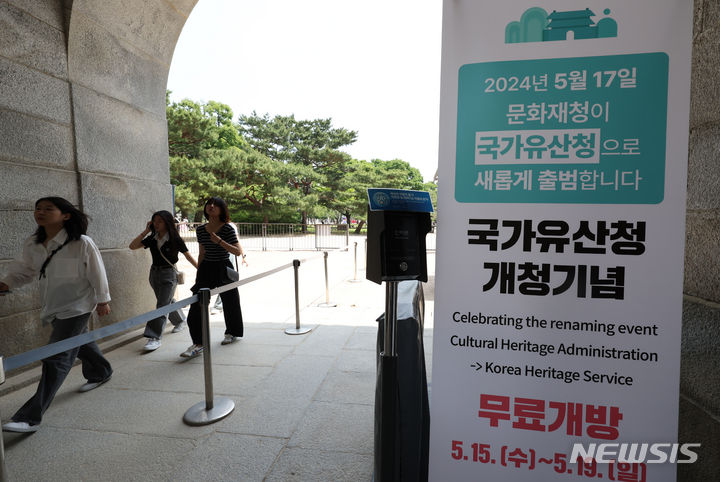 【NEWSIS】17日、国家遺産庁の発足を記念して、文化遺産指定を受けた韓国国内76カ所の名所が無料で開放された。ソウル市鍾路区の景福宮では、大勢の外国人や韓国人観光客が訪れて文化遺産を見て回った。