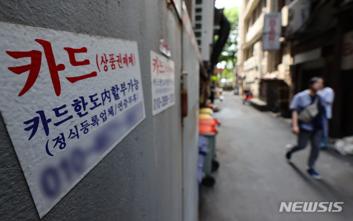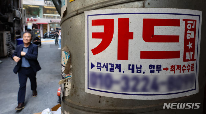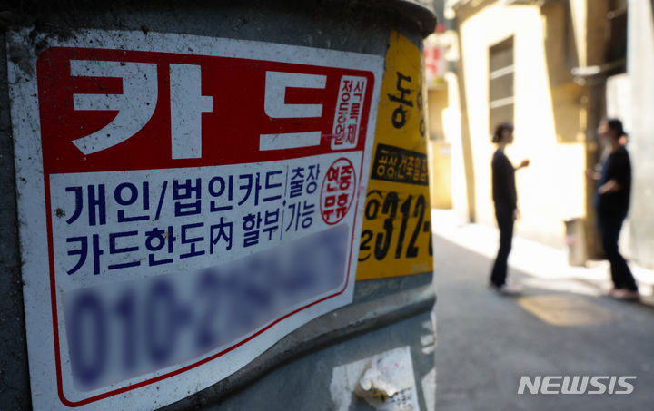韓国銀行によると、現金サービスやカードローンなど一般銀行のカード融資の延滞率は今年2月末の時点で3.4%に達し、2014年11月(3.4%)以来、およそ10年ぶりの最高値となったことが分かった。信用スコアの低い借り手が第1・第2金融圏から融資を受けられず、カードローンなどに押し寄せている影響だと解釈されている。写真は29日、ソウル市内の街頭に掲示されたカード融資広告。