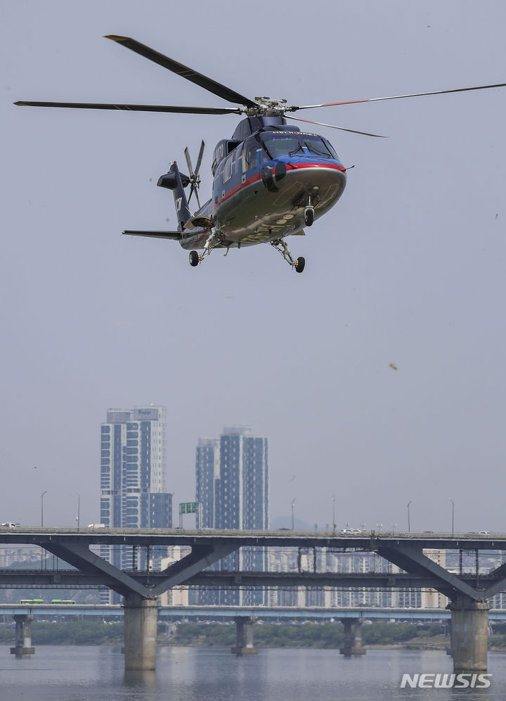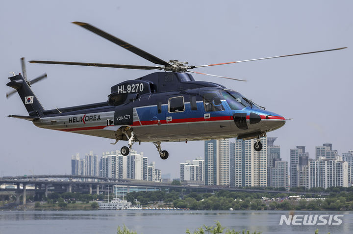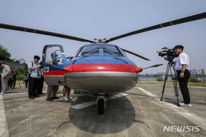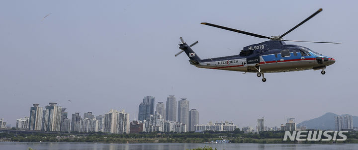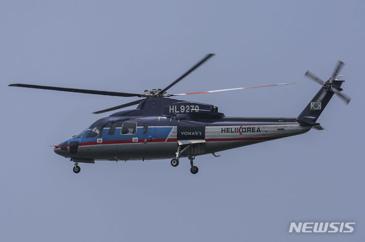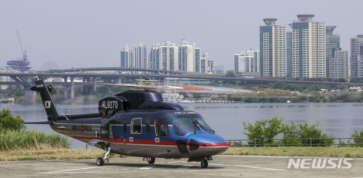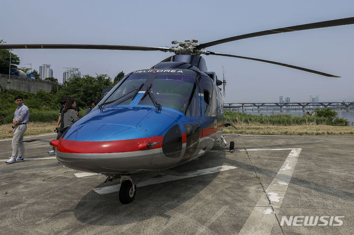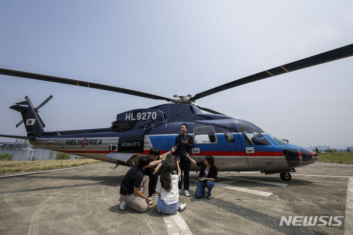 ソウル市松坡区の蚕室ヘリポートで10日、VONAERサービス・グランドオープニングデー記念試乗会が行われた。写真は、ヘリコプターが到着する様子。