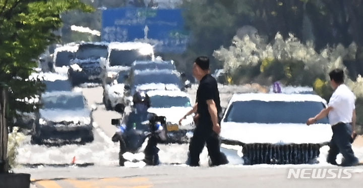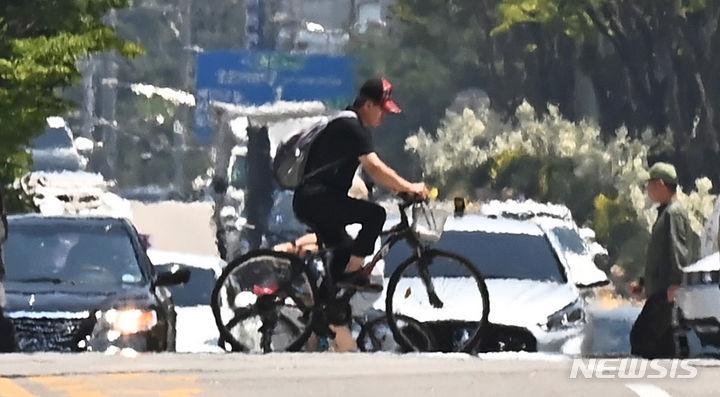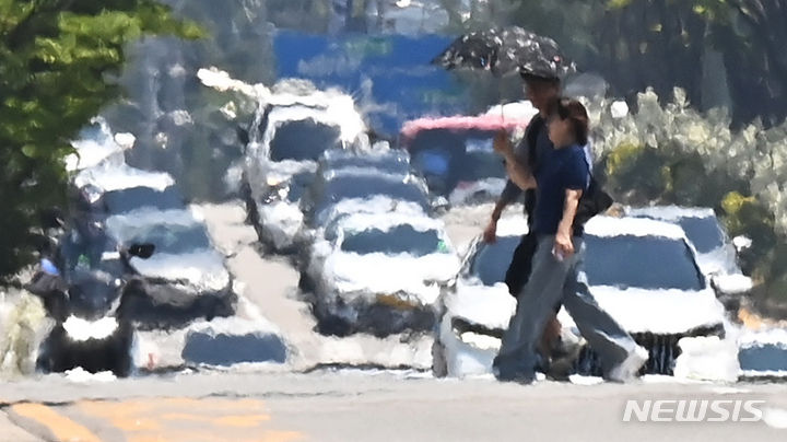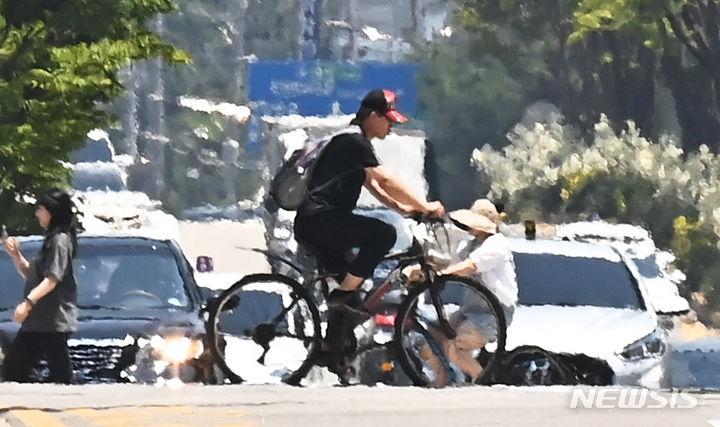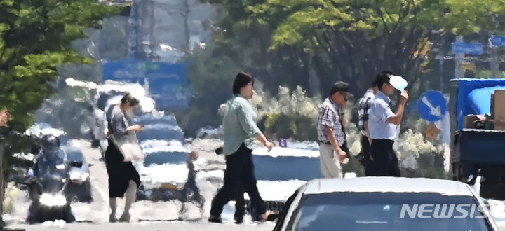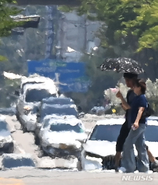 韓国各地に猛暑注意報が発令された18日、京畿道水原市八達区の仁溪洞では、アスファルトの路面から陽炎が立ち上っていた。