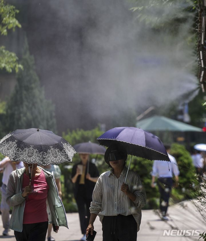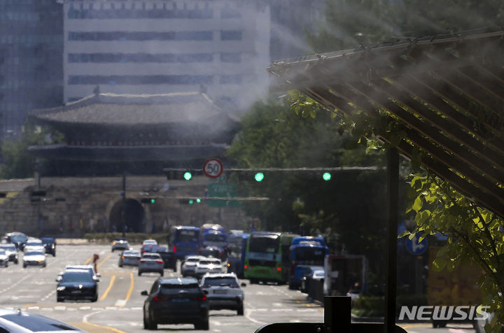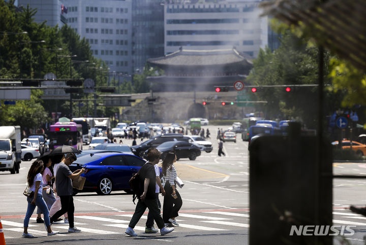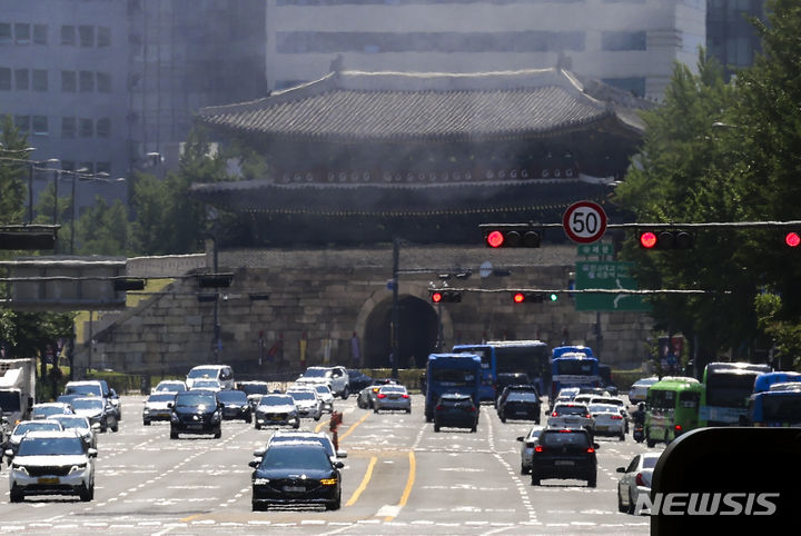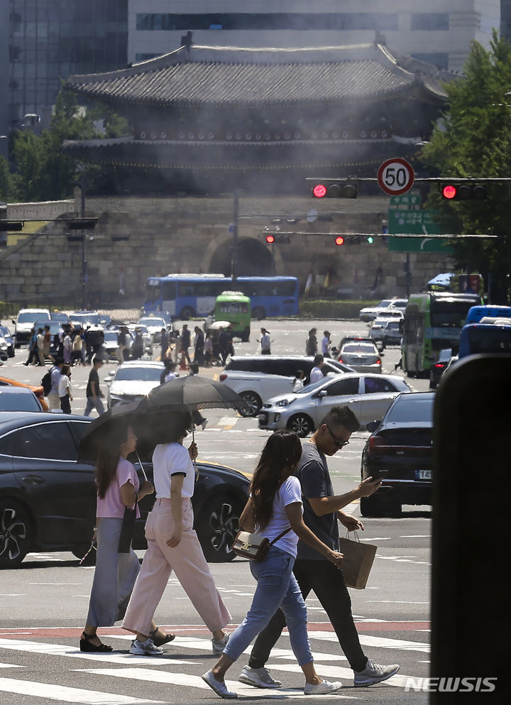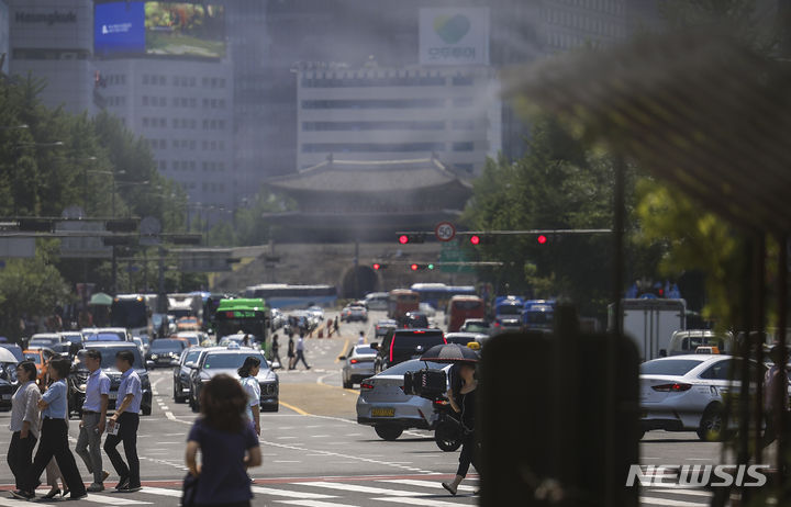 【NEWSIS】ソウルをはじめ韓国の多くの地域に猛暑注意報が発令された19日、暑さのせいでゆらいで見える崇礼門(ソウル市中区)の様子。