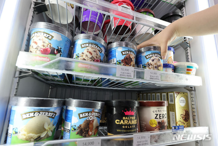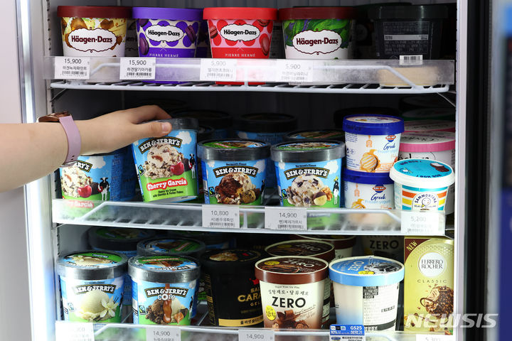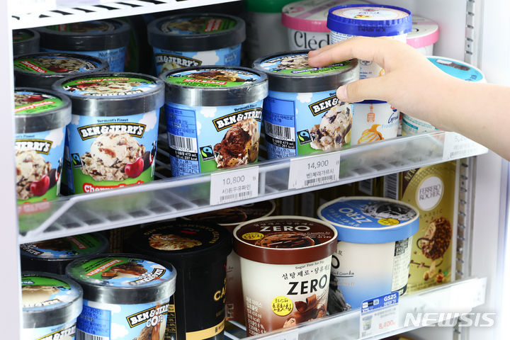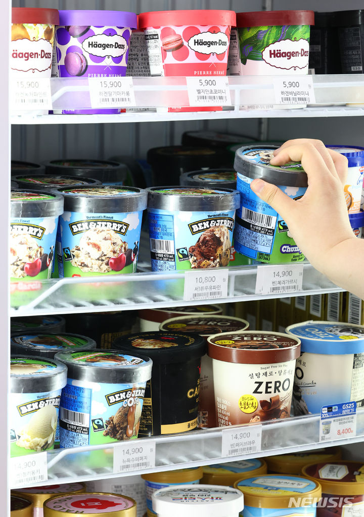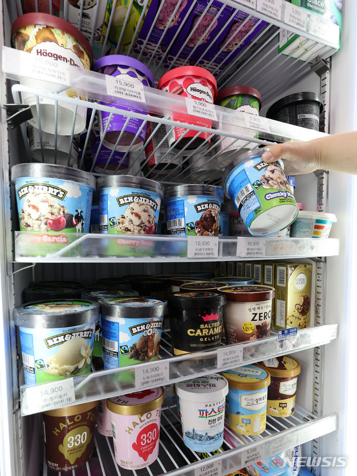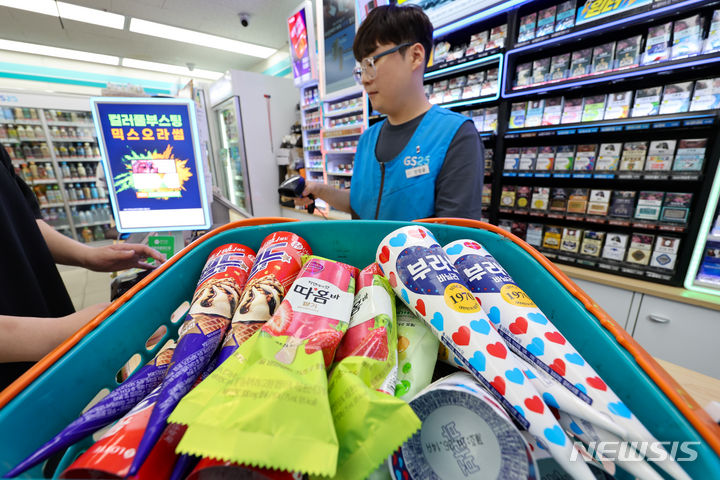 21日、ソウル市内のコンビニ「GS25」の売り場でアイスクリームを選んでいる客の様子。