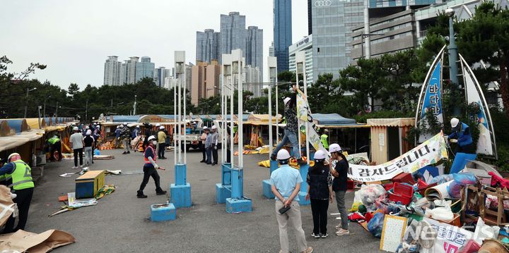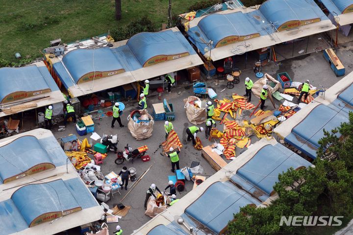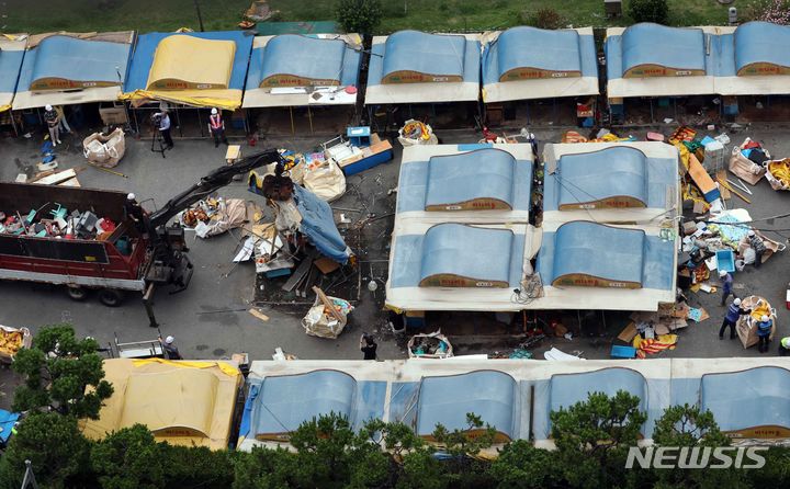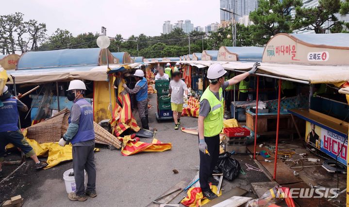 この屋台村は、市有地を無断で占有したり、申告せずに営業するなど、絶えず物議をかもしていたが、海雲台区は2021年、商人たちと2年6カ月の猶予期間を経て今年1月31日に自主的に撤去することで合意し、この日最終的に撤去に踏み切った。