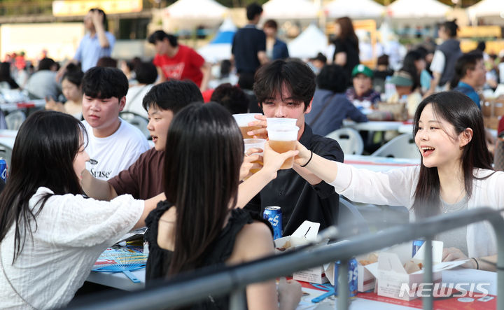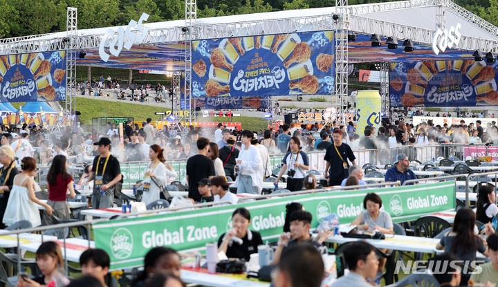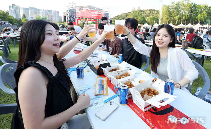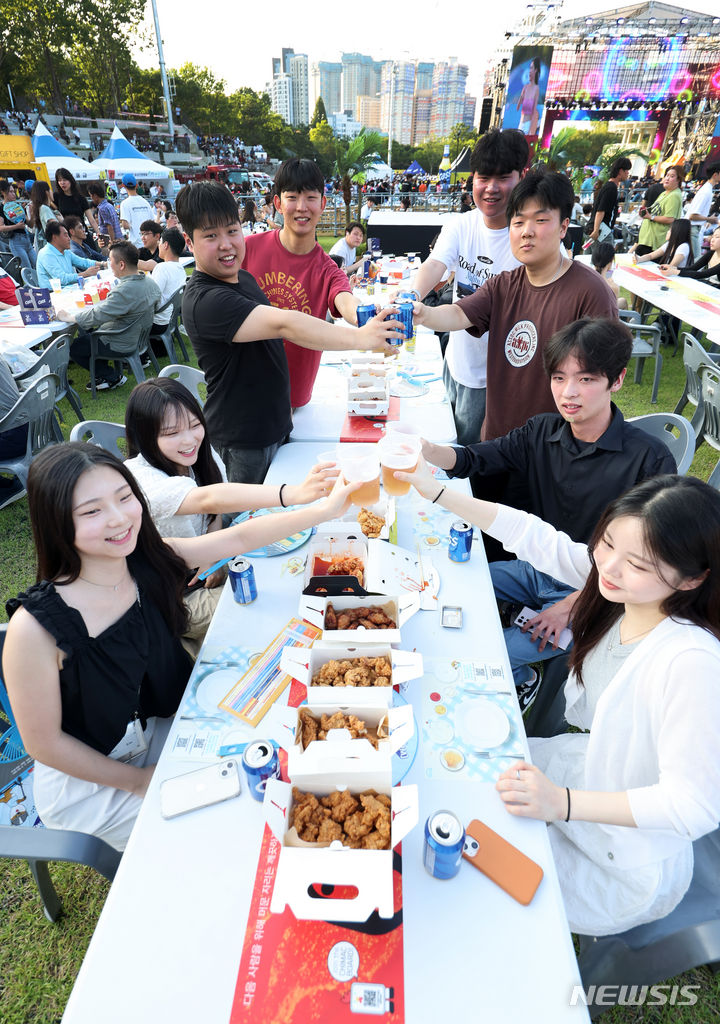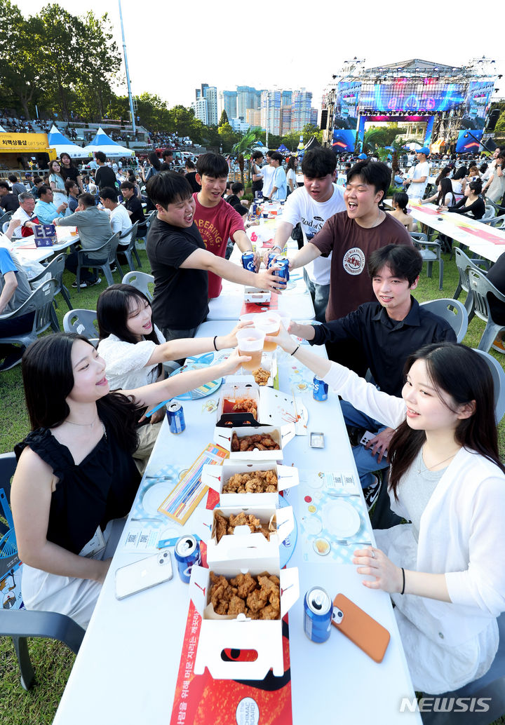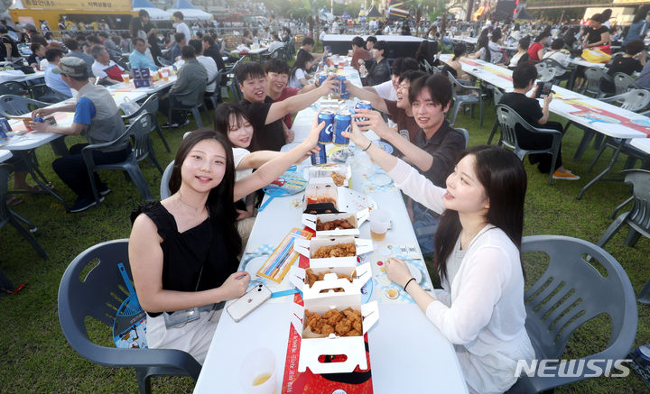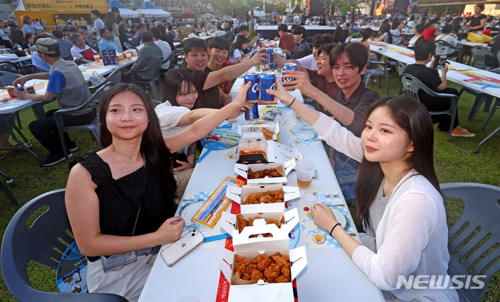 大邱市達西区の頭流公園2・28自由広場で3日午後、2024年大邱チメク(フライドチキン&ビール)フェスティバルが開催され、市民たちが冷えたビールを飲みながらチキンを食べ、イベントを楽しんだ。