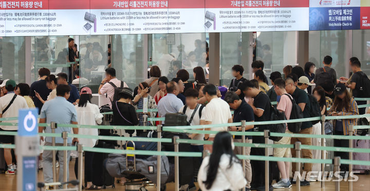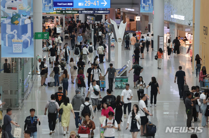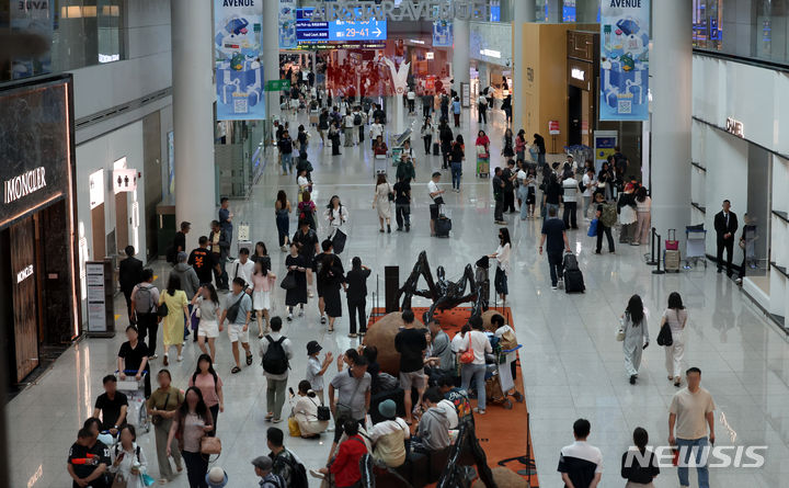 【NEWSIS】本格的な夏休みシーズンを前にした12日午前、仁川国際空港第1旅客ターミナルの免税区域は、旅行客で混み合っていた。