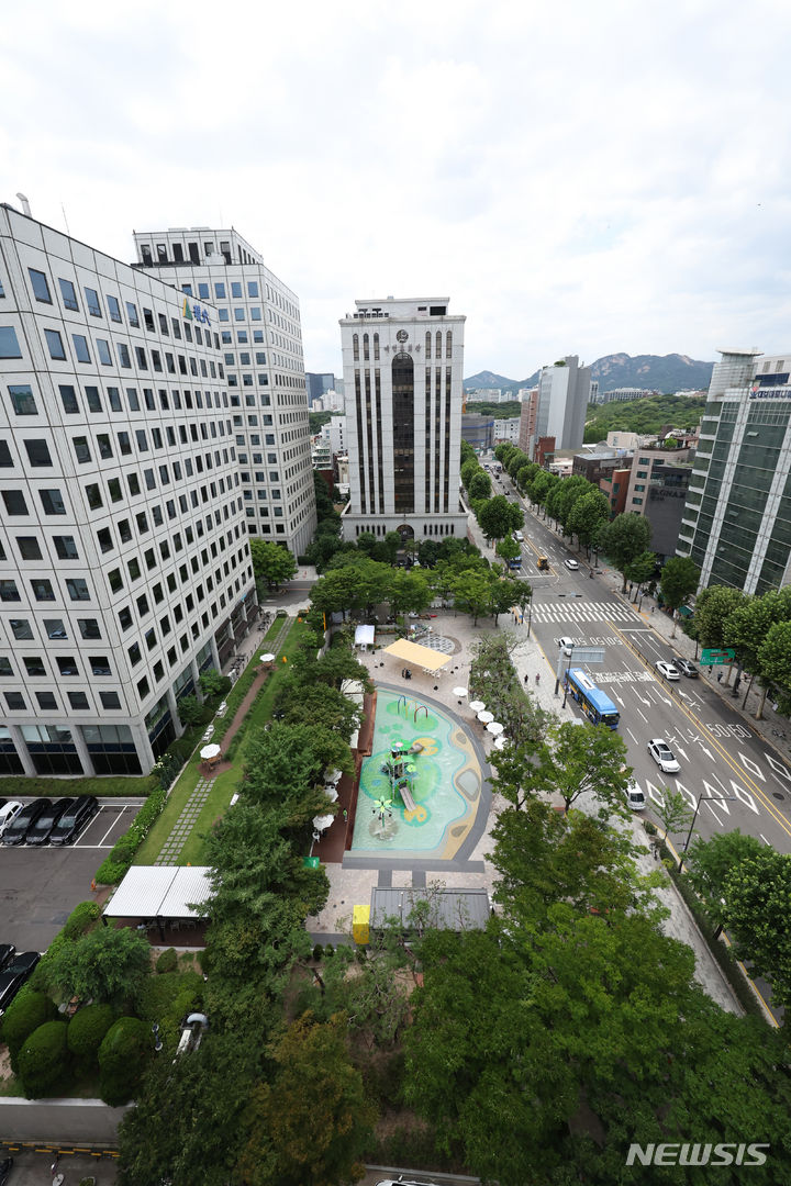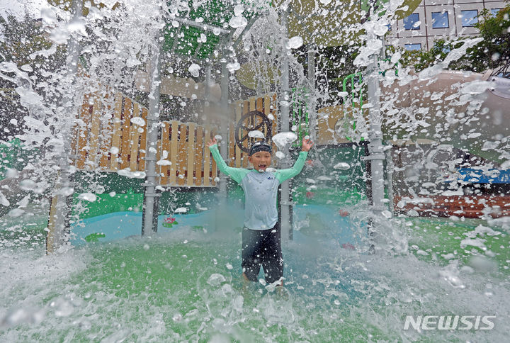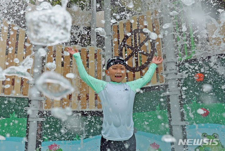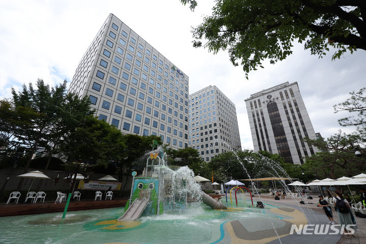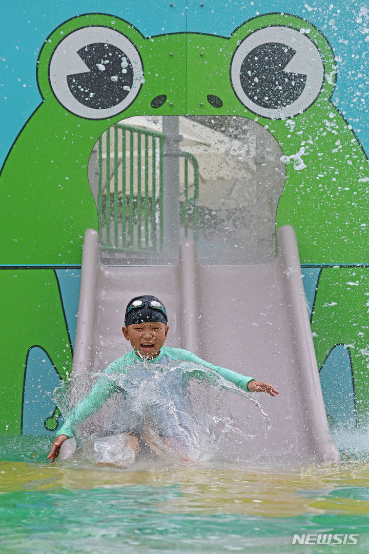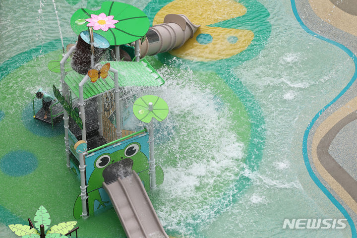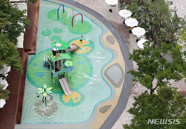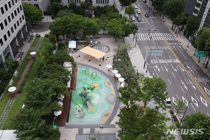 【NEWSIS】15日午後、ソウル市鍾路区の梨花交差点近くに、同区初の子どもプール「ヨンジ・プール」がオープンした。この子どもプールは午前10時から午後5時まで利用できる。休業は毎週月曜日。