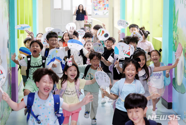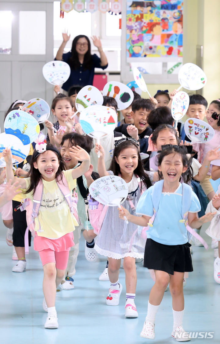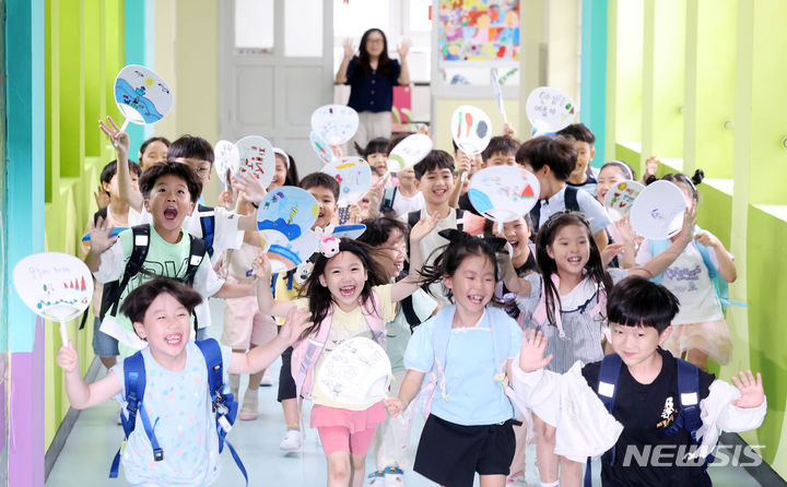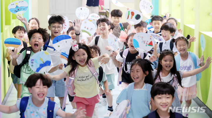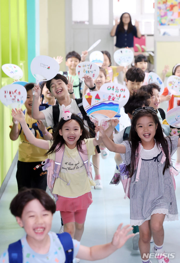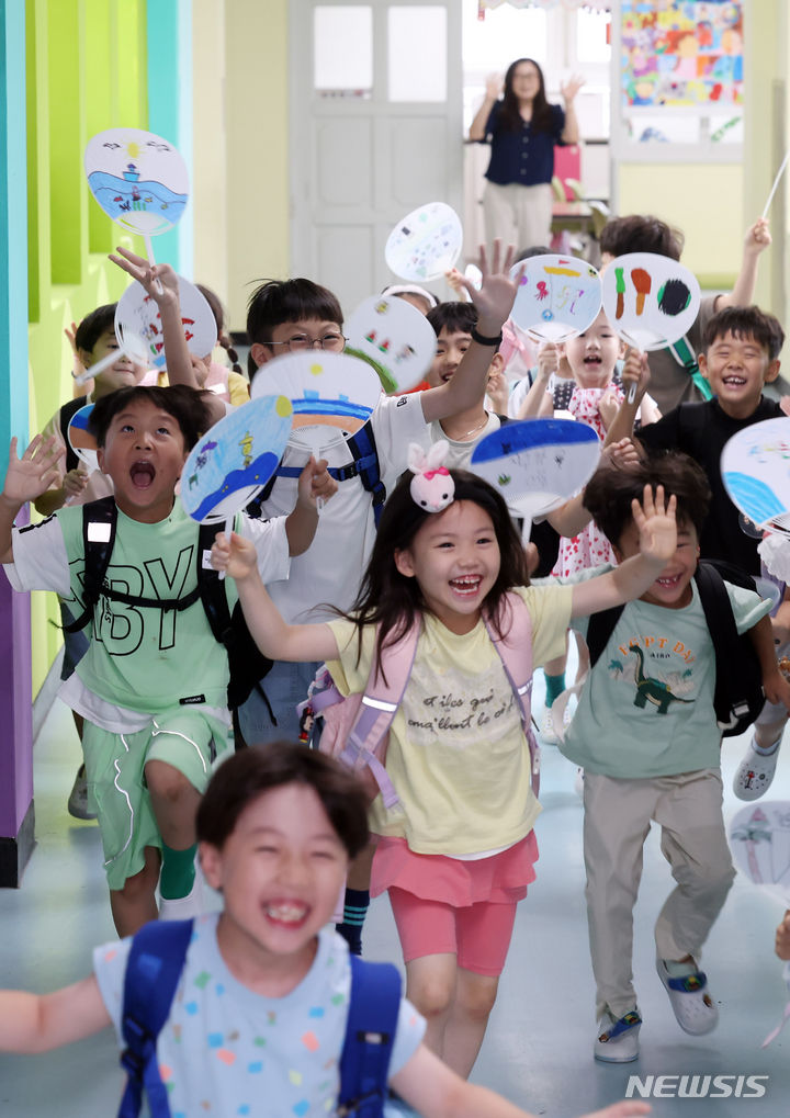 【NEWSIS】17日、釜山市海雲台区の海松小学校1年1組の児童が、終業式を終えて明るく笑いながら下校している様子。