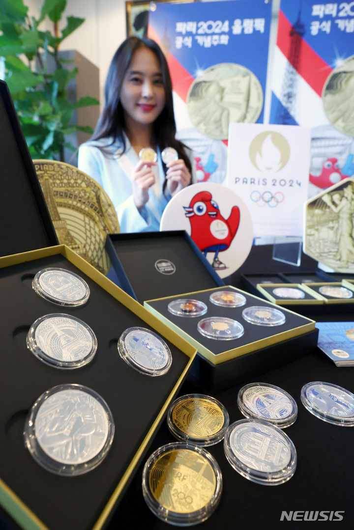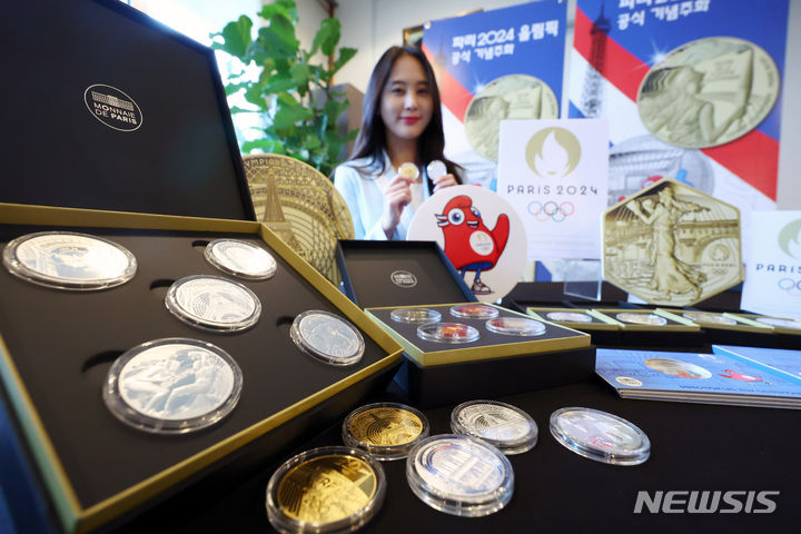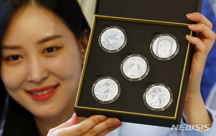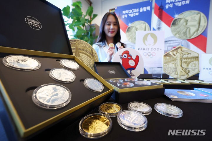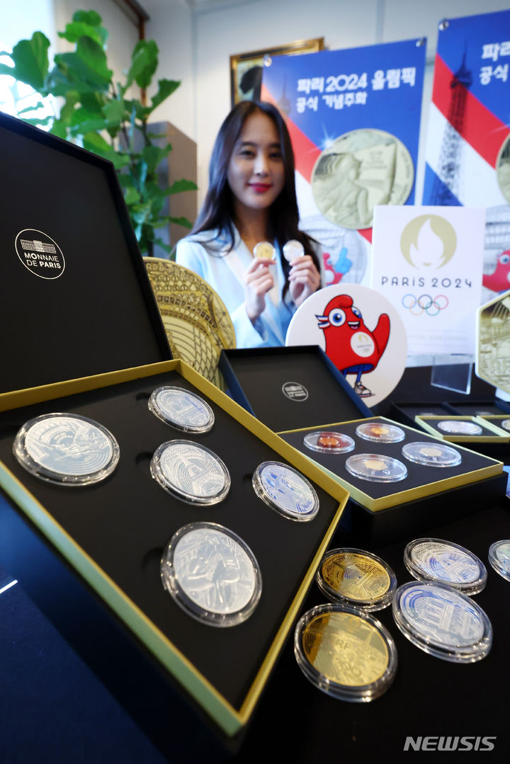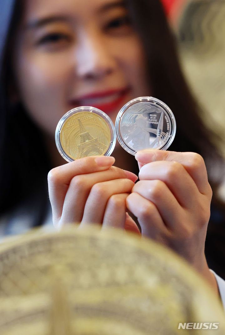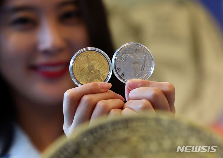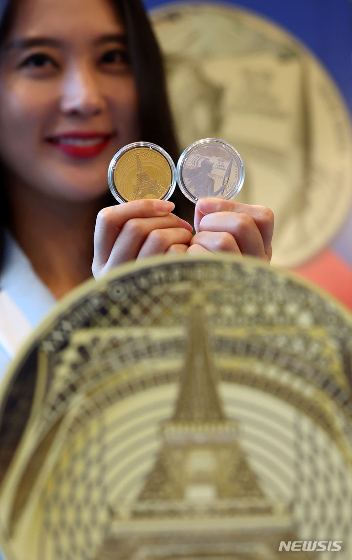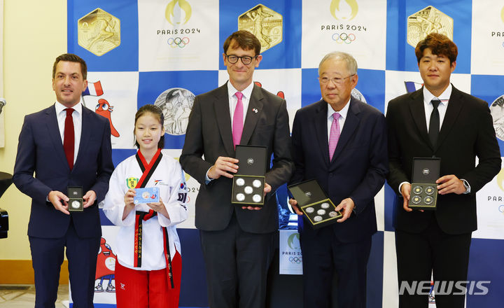 【NEWSIS】18日、ソウル市西大門区の駐韓フランス大使官邸で、パリ五輪記念硬貨がお披露目された。