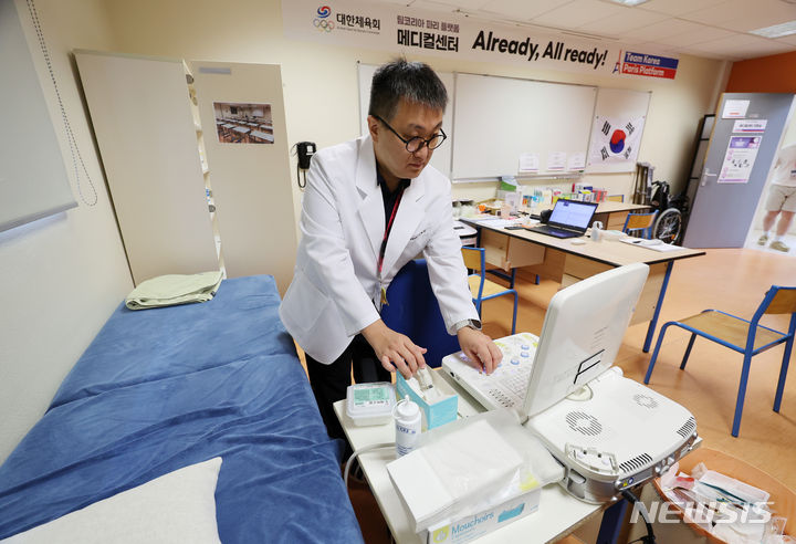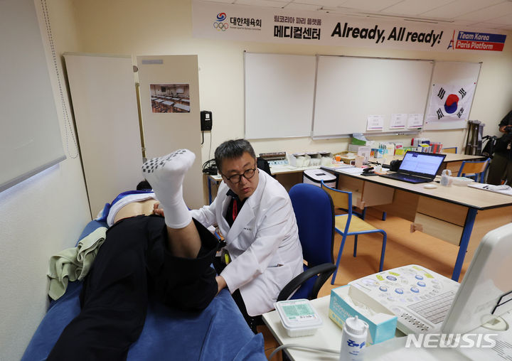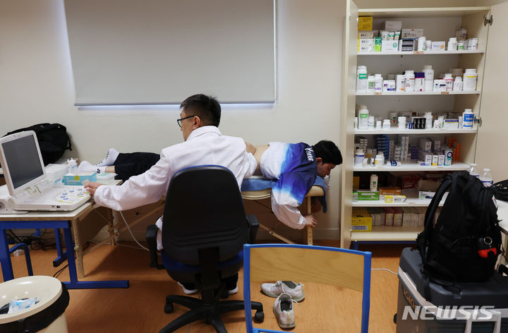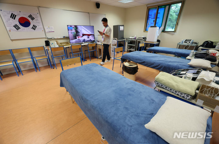 【NEWSIS】21日はフランス・フォンテーヌブローのフランス国立防衛スポーツセンター(CNSD)に設けられた事前トレーニング・キャンプ「チーム・コリア・パリ・プラットフォーム」のオープン・デーだった。写真はメディアに公開されたメディカル・センター治療室。