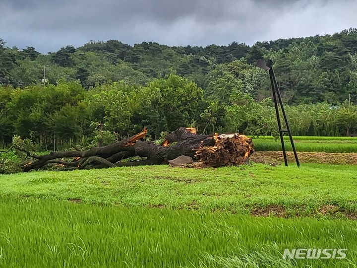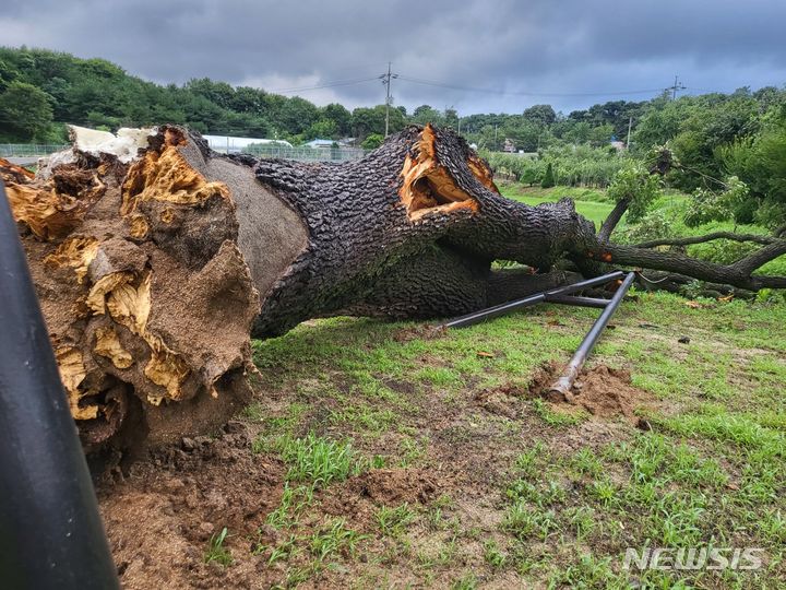 【NEWSIS】韓国天然記念物第555号のハンノキが23日午前、京畿道抱川市内で根元から倒れた。写真提供=読者