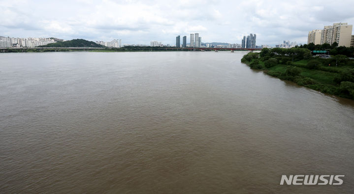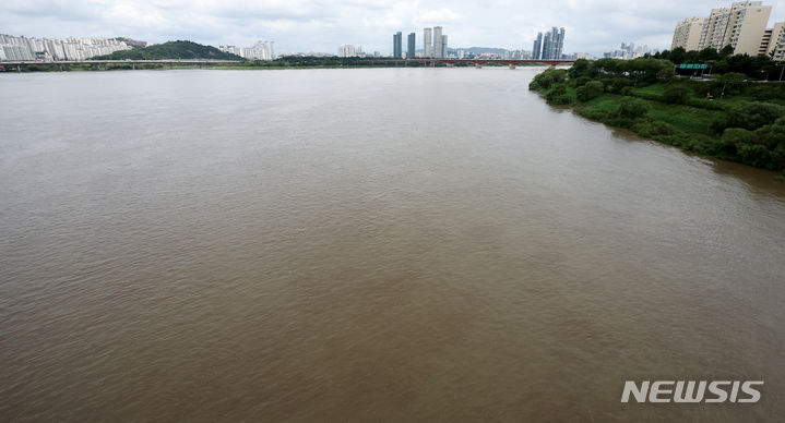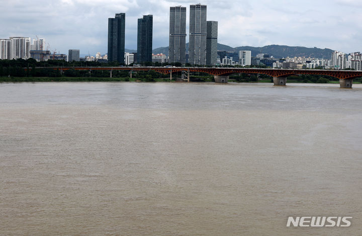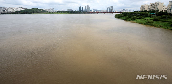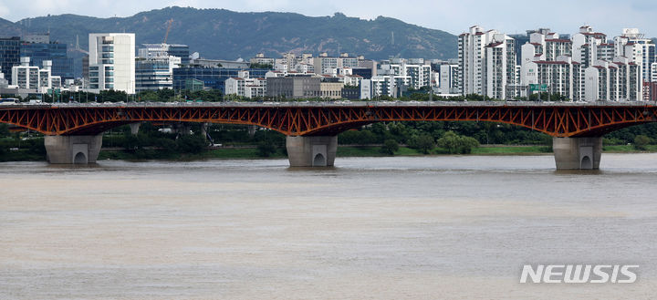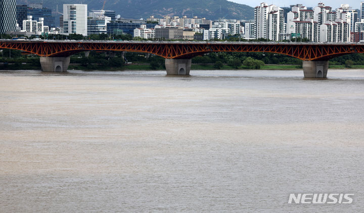 【NEWSIS】梅雨が小康状態となった24日午後、ソウル市城東区の東湖大橋の下を流れる漢江は泥水に変わっていた。