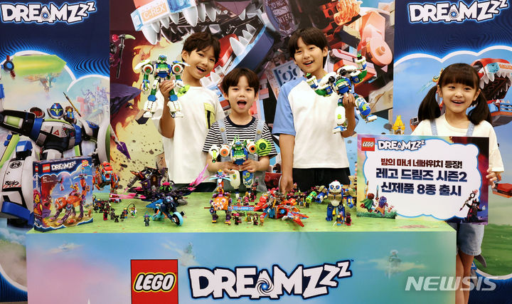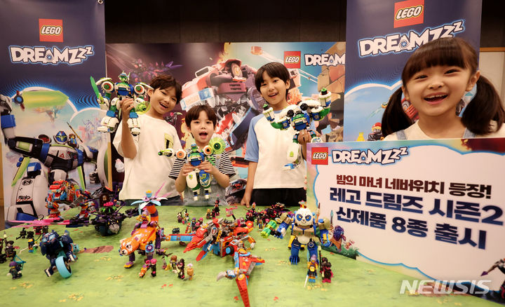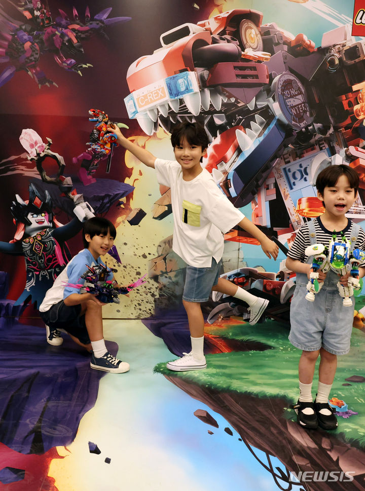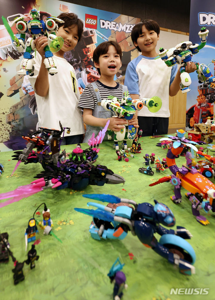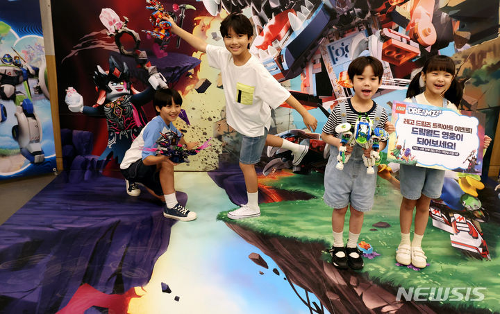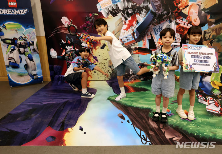 ソウル市中区の光化門スペースラオンで31日午前、キッズモデルたちが「レゴ®ドリームズ」シーズン2新商品を手に、トリックアート体験をした。