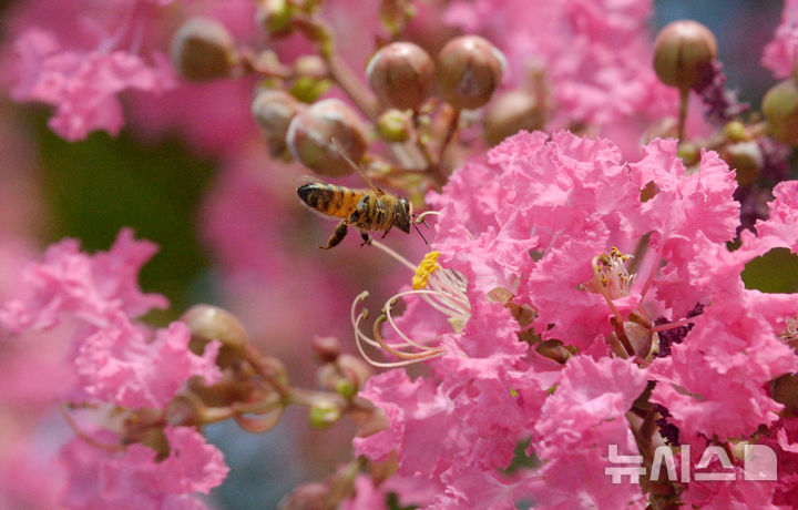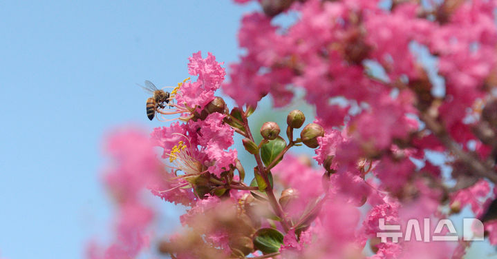 【NEWSIS】真夏の天気が続いている1日、全羅北道全州市の全州韓屋村一帯ではサルスベリが開花していた。