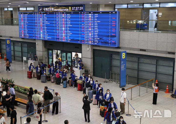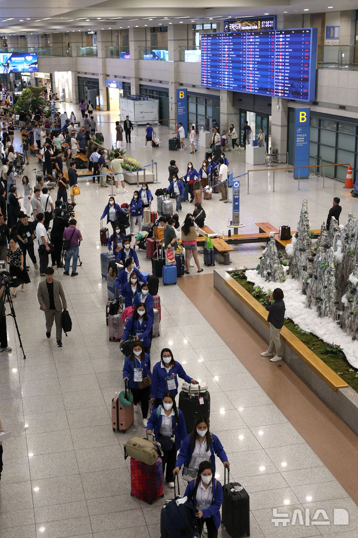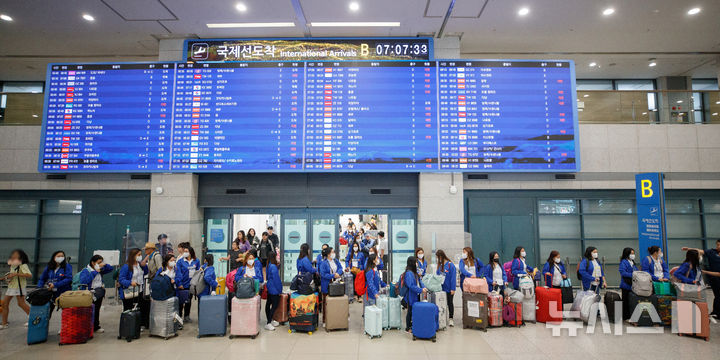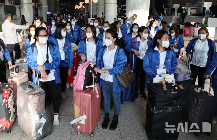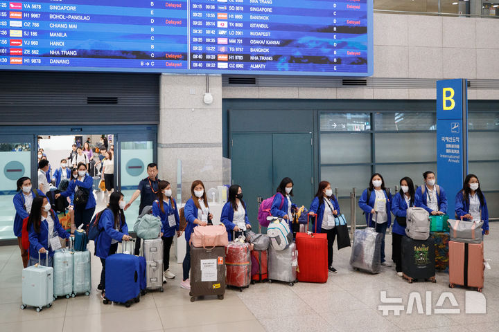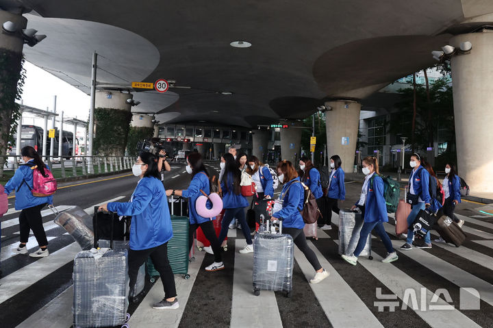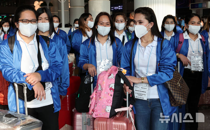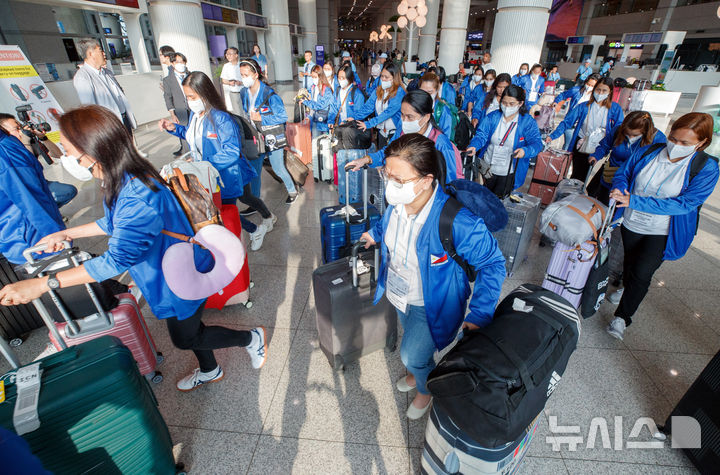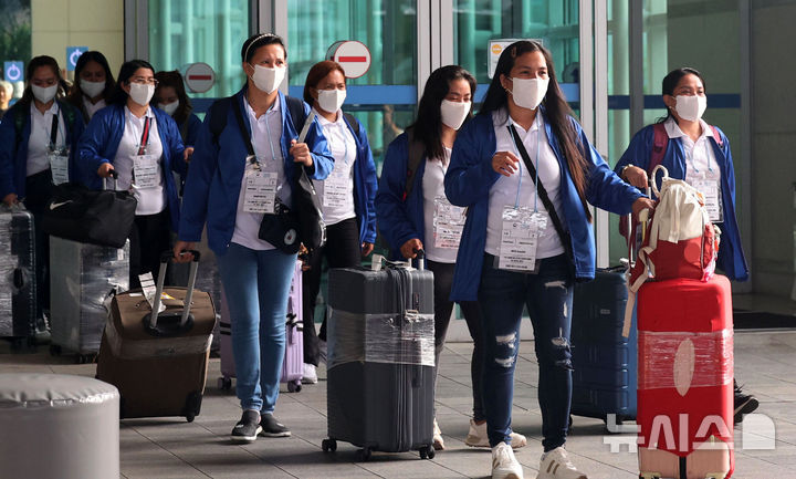 【NEWSIS】外国人家事管理士テスト事業に参加するフィリピン人家事管理士たち100人が6日午前、仁川国際空港に到着した。参加者は4週間の研修を受けた後、来月3日からソウル市内の家庭で家事代行に従事する。