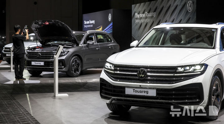 【NEWSIS】ソウル市竜山区のグランドハイアット・ソウルで6日、フォルクスワーゲンのフラッグシップSUV(スポーツタイプ多目的車)新型トゥアレグのメディアフォトセッションイベントが開かれた。写真は、同イベントで公開された新型トゥアレグの様子。