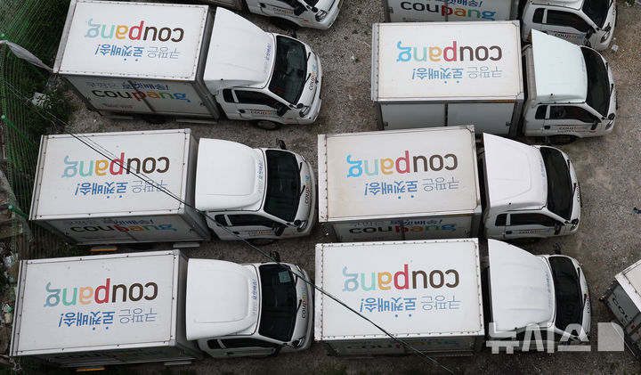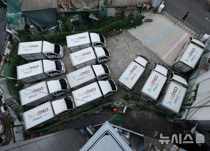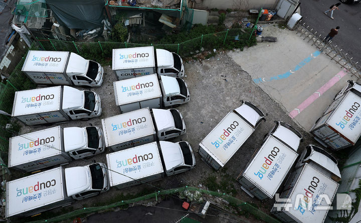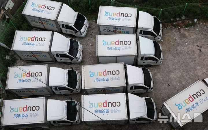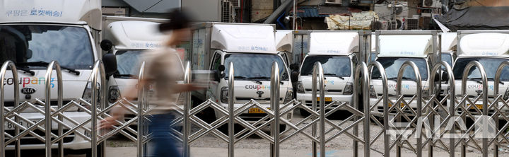 【NEWSIS】韓国大手eコマース企業・通販サイト「coupang(クーパン)」の「wow(ワウ)」メンバーシップ料金がこれまでの月4990ウォン(約530円)から月7890ウォンに引き上げられた7日午前、ソウル市中区内の駐車場に止まっているクーパン配達トラック。