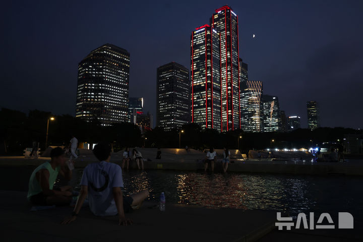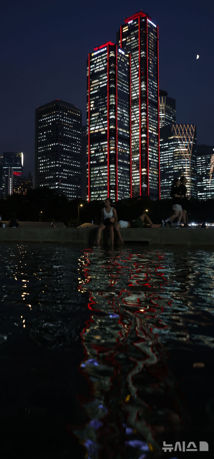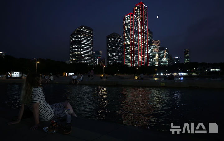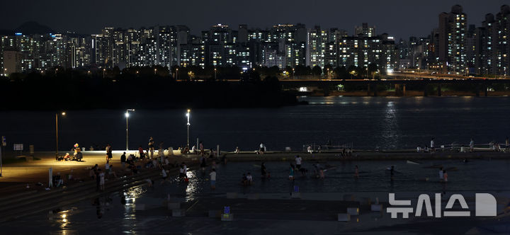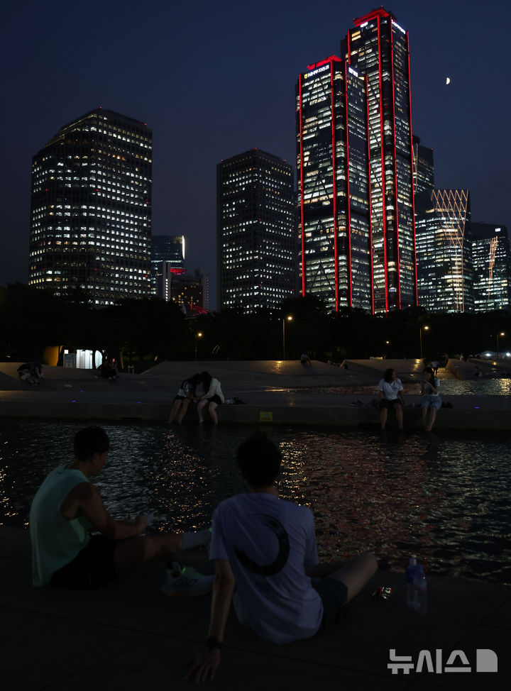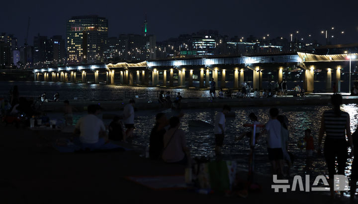 【NEWSIS】ソウルで22日連続熱帯夜が続いている12日夜、ソウル市永登浦区汝矣島の漢江公園水色広場を訪れ、暑さをしのぐ人々。