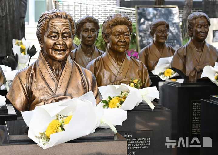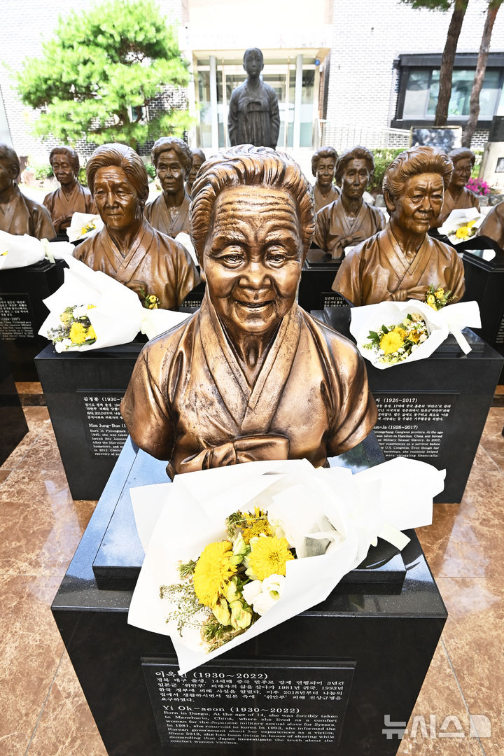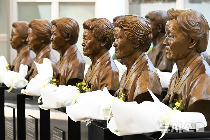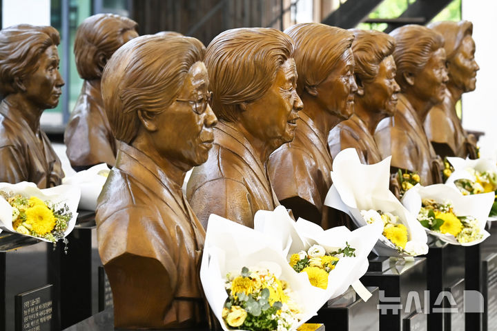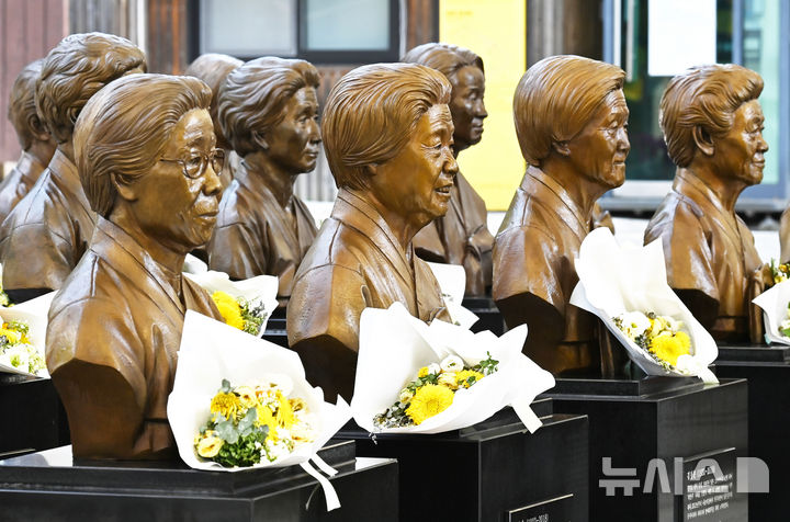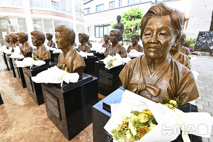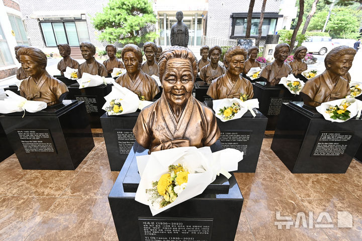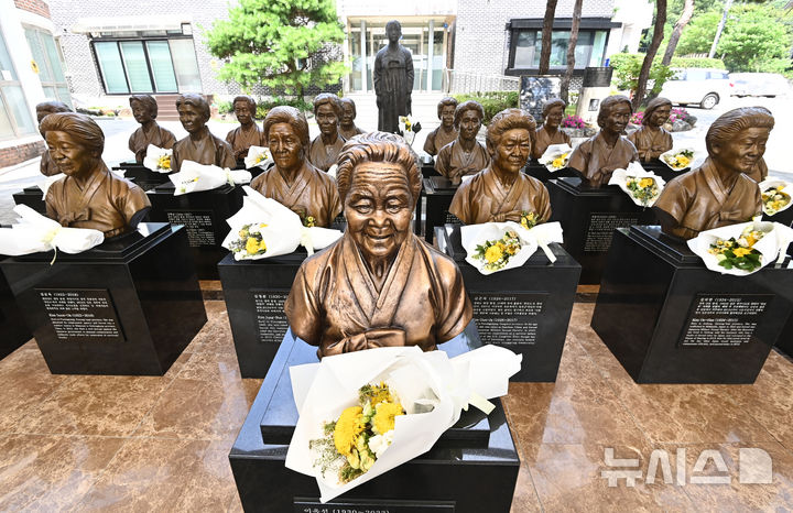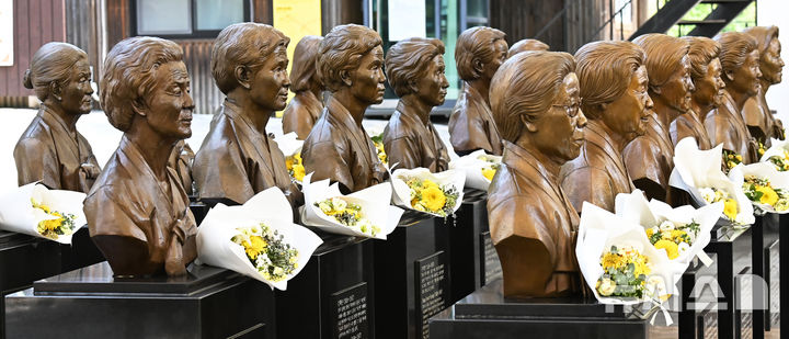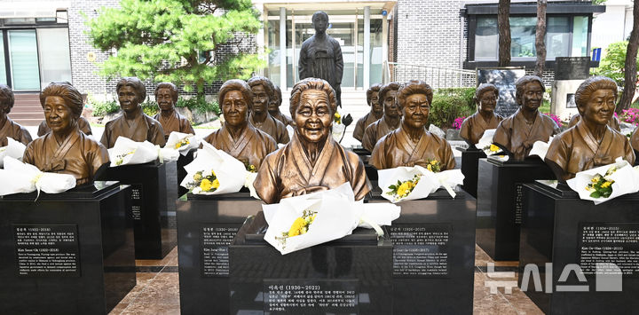 【NEWSIS】「日本軍慰安婦被害者を称える日」があすに迫った13日、京畿道光州市の「ナヌムの家」には、世を去った慰安婦被害者のハルモニ(おばあさん)たちの胸像が置かれていた。