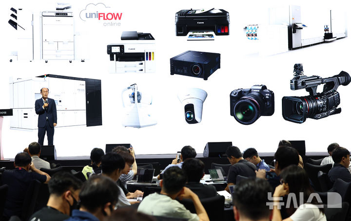 ソウル市松坡区のシグニエル・ソウルで23日、キヤノンの新商品発表イベントが行われ、「EOS R1」と「EOS R5 Mark II」が紹介された。