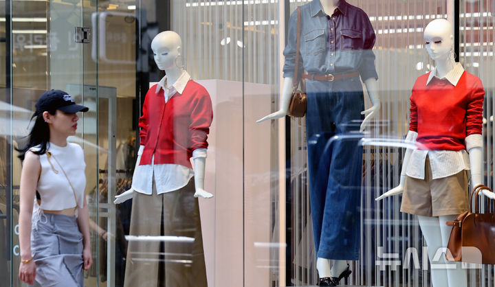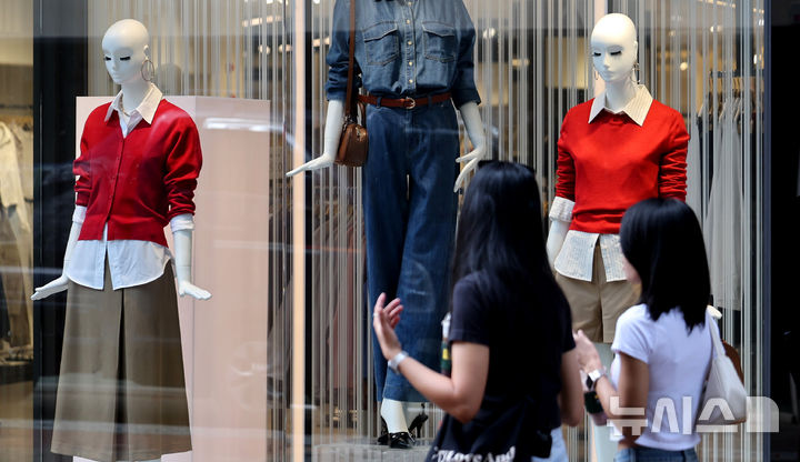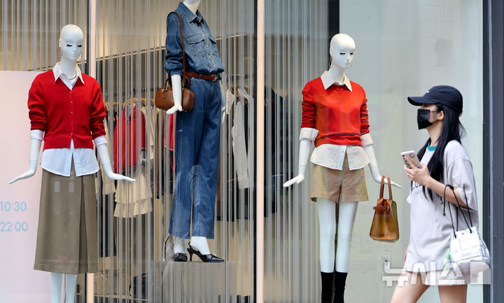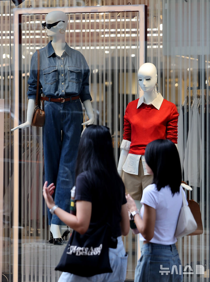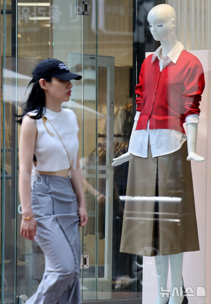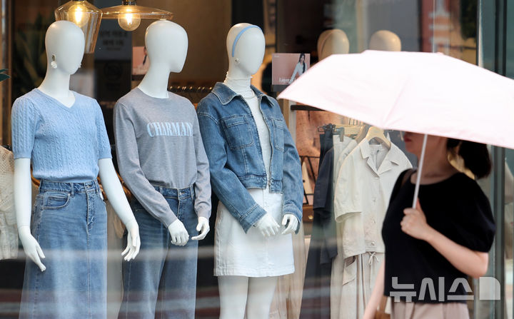 【NEWSIS】連日猛暑が続いている26日、大邱市中区東城路のある衣料品店のショーウィンドーでは、既に秋物が陳列されていた。