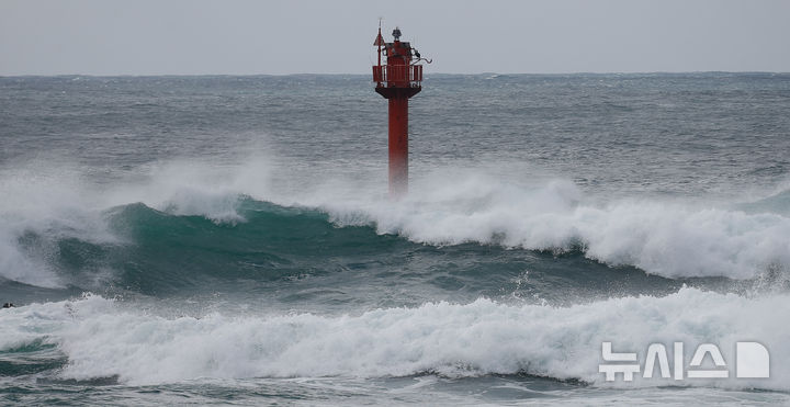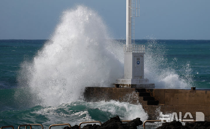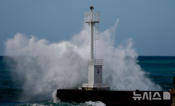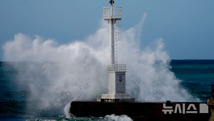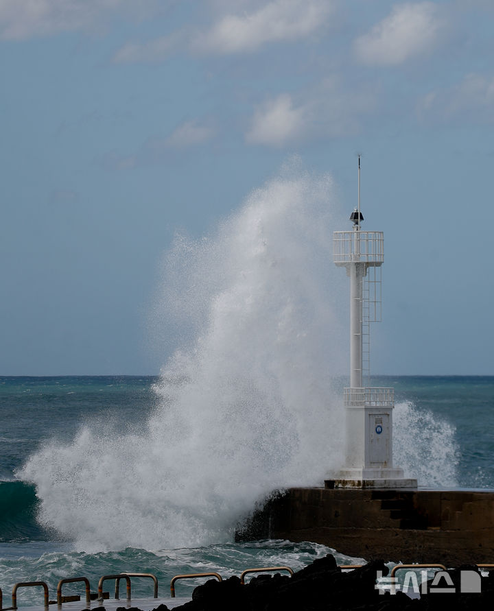 台風10号が日本に向かって北上している中、済州道西帰浦市表善面の海岸には29日午前、台風の影響でうねりを伴った高波が押し寄せていた。