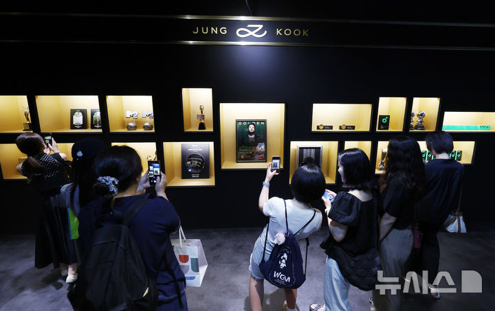 【NEWSIS】30日、ソウル市中区のLe Meridien & Moxyで開かれたアイドルグループ防弾少年団のJUNG KOOKの展示「GOLDEN:The Moments」を見て回るファンの様子。