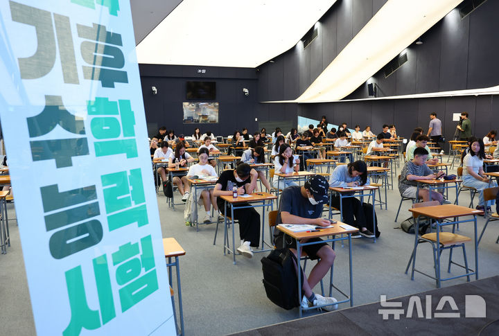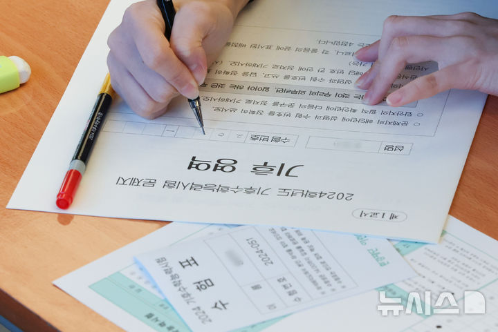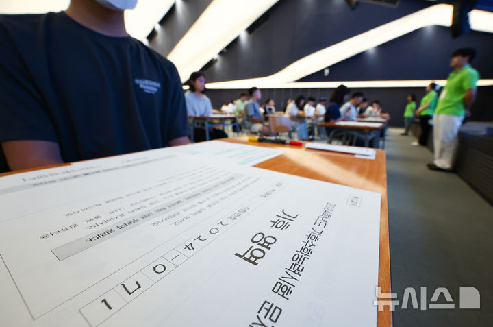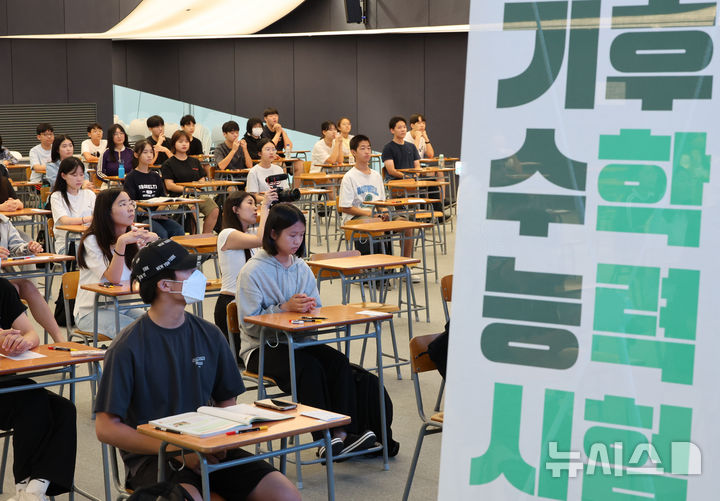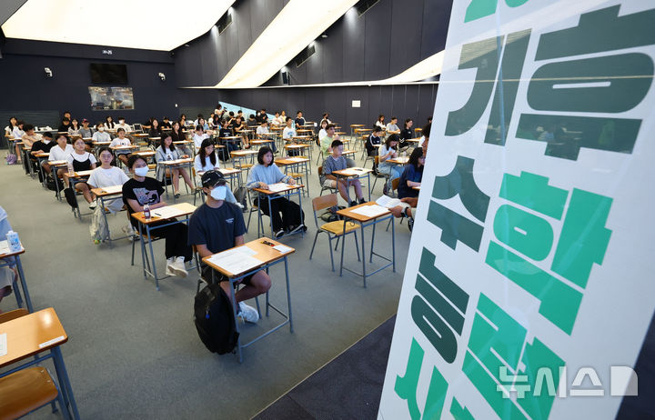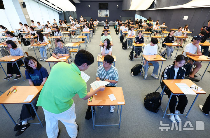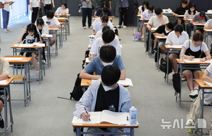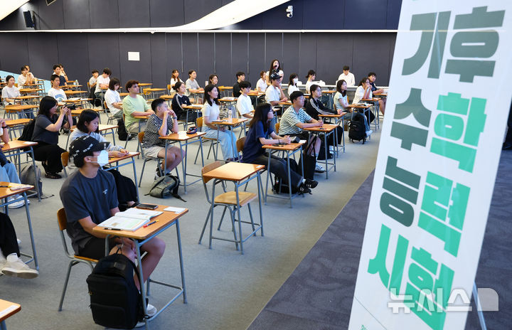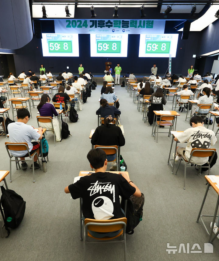 【NEWSIS】31日午後、ソウル市江西区のコーロンOne&Onlyタワーで開かれた「第1回気候修学能力試験」で、試験に臨む準備をしている受験生らの様子。