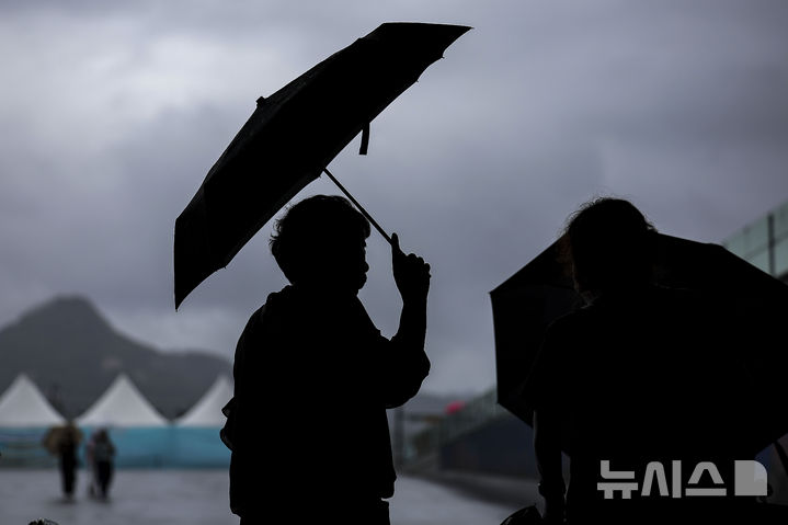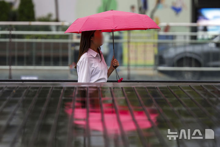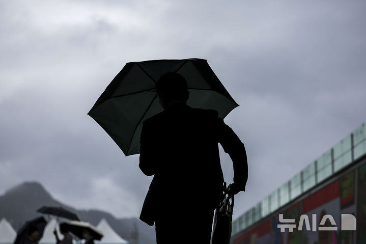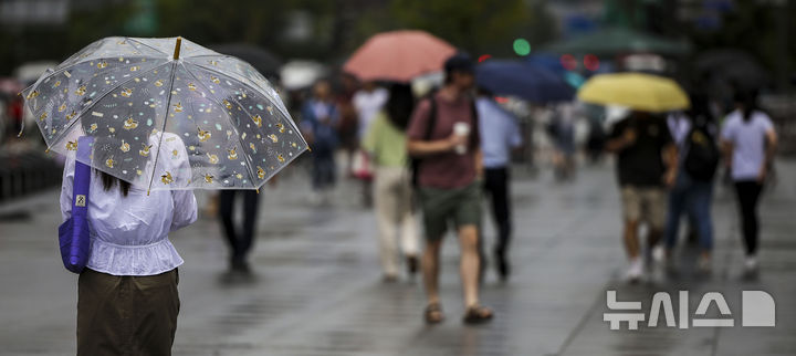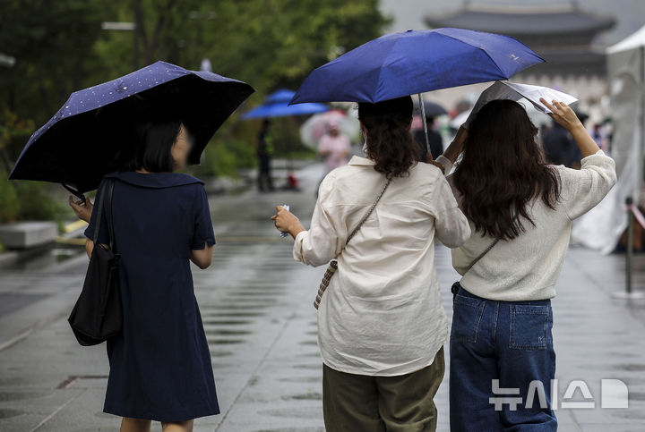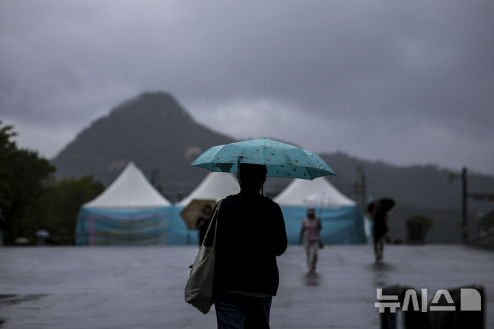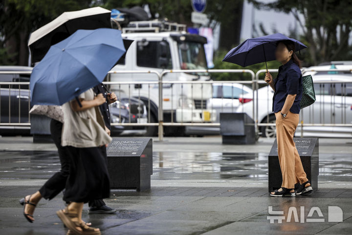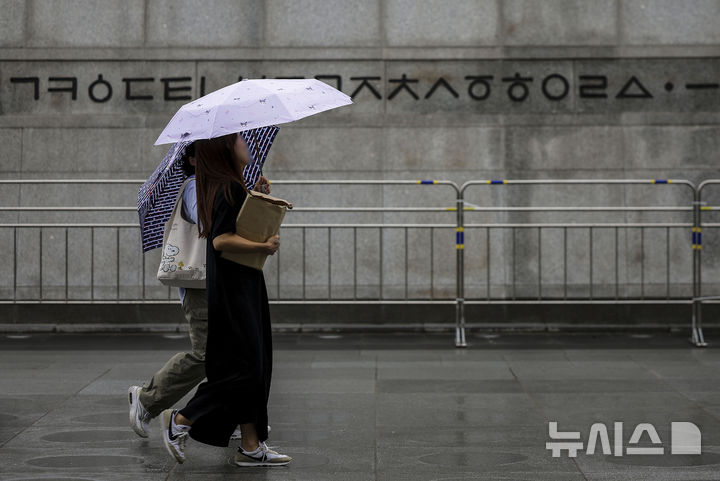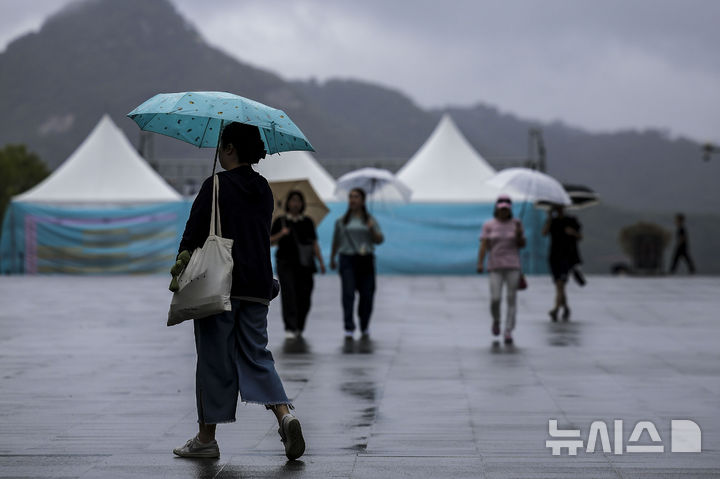 【NEWSIS】6日、ソウル市鍾路区の光化門広場では、雨傘を差した市民が行き交っていた。