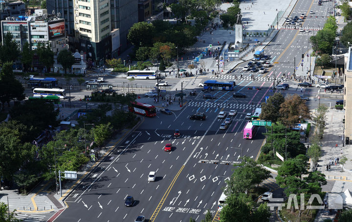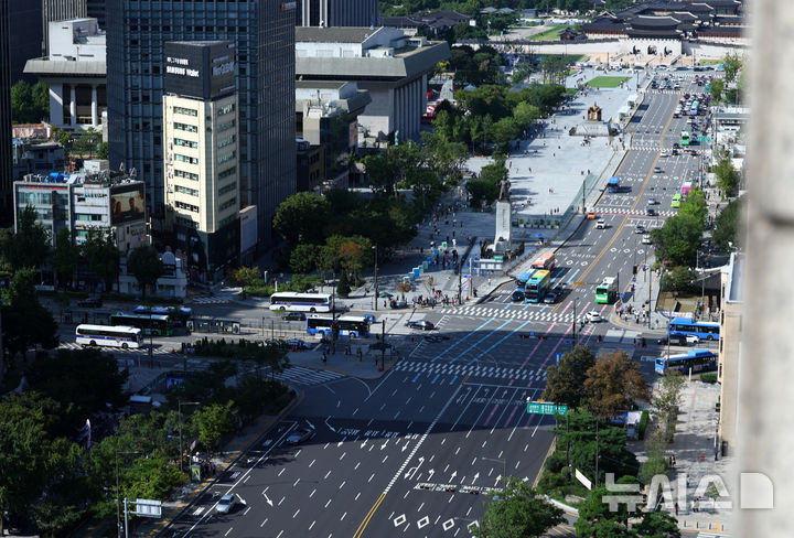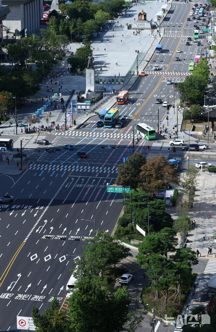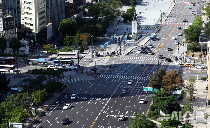 秋夕(中秋節。今年は9月17日)の連休初日となる14日、ソウル市中区の世宗大路は閑散とした様子だった。