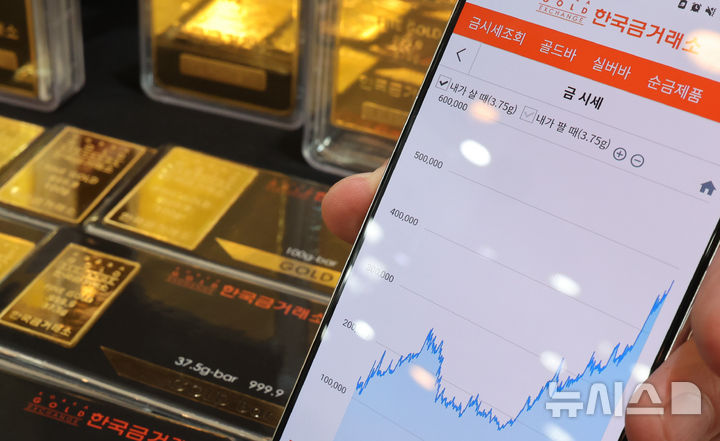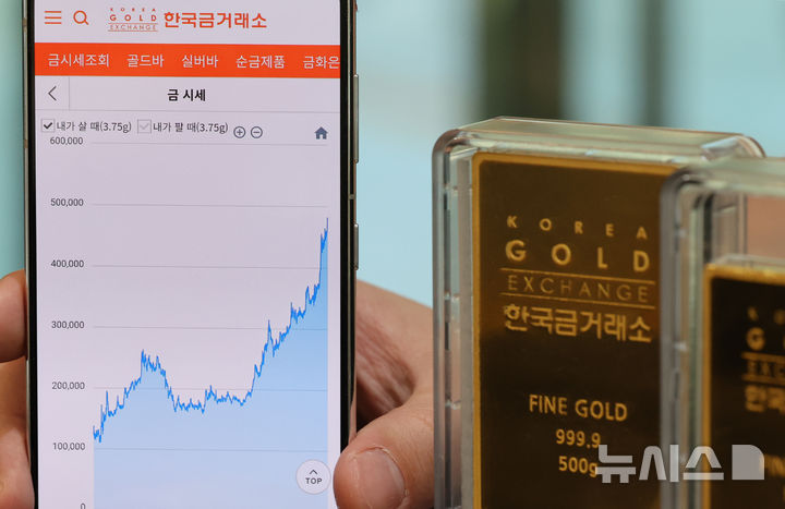 このところ金価格は連日史上最高値を更新している。韓国金取引所によると24日現在、純金1匁(3.75グラム)の購入価格は48万ウォン(約5万1900円)を記録した。