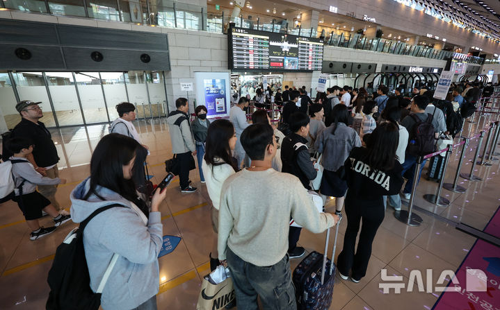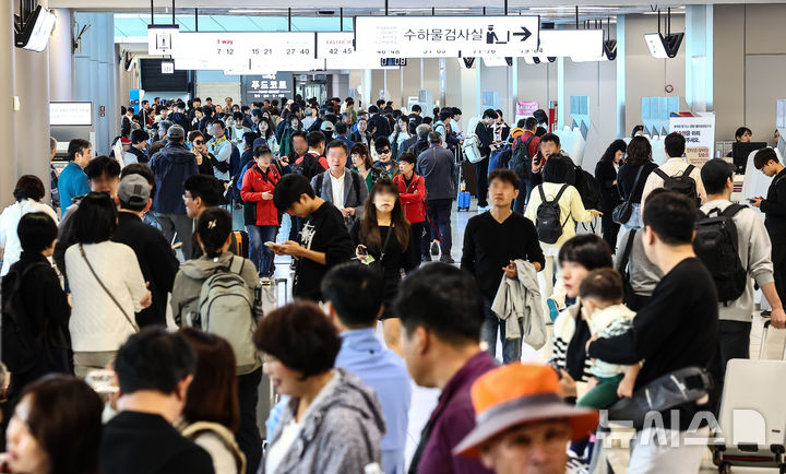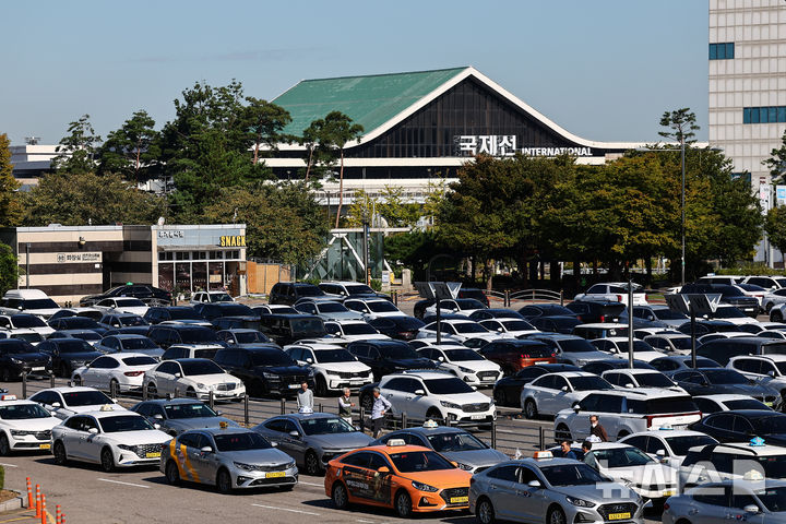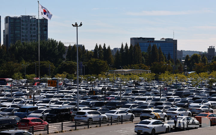 開天節(建国記念日、10月3日)に当たる3日午前、ソウル市江西区にある金浦国際空港国内線の駐車場は混雑していた。