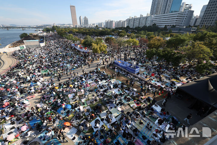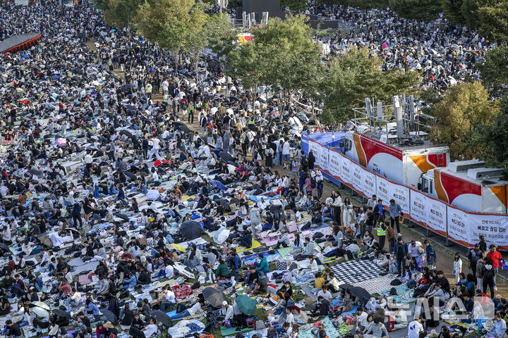 「ソウル世界花火祭り」の人波でいっぱいの汝矣島漢江公園