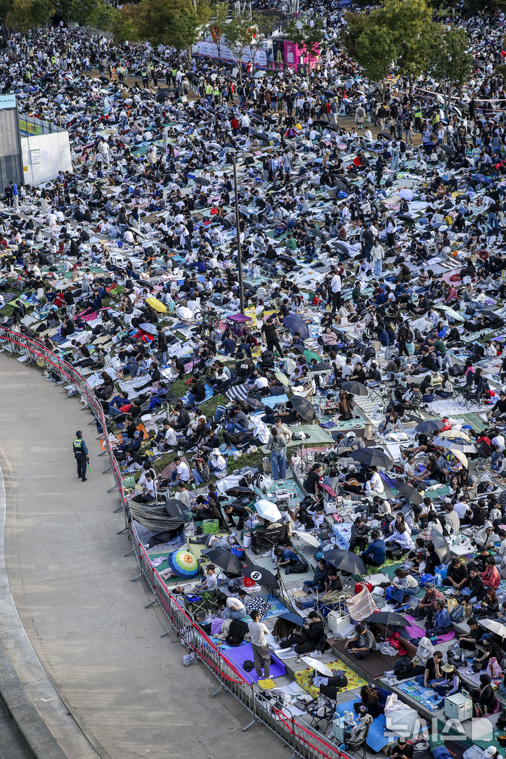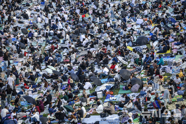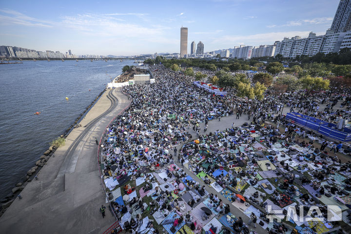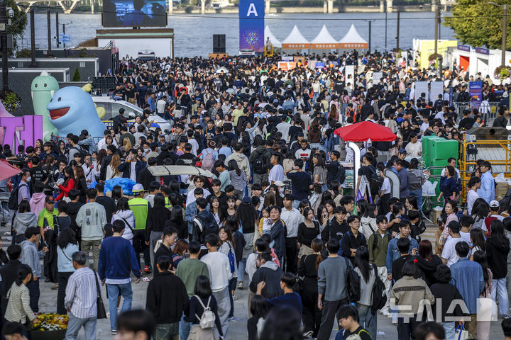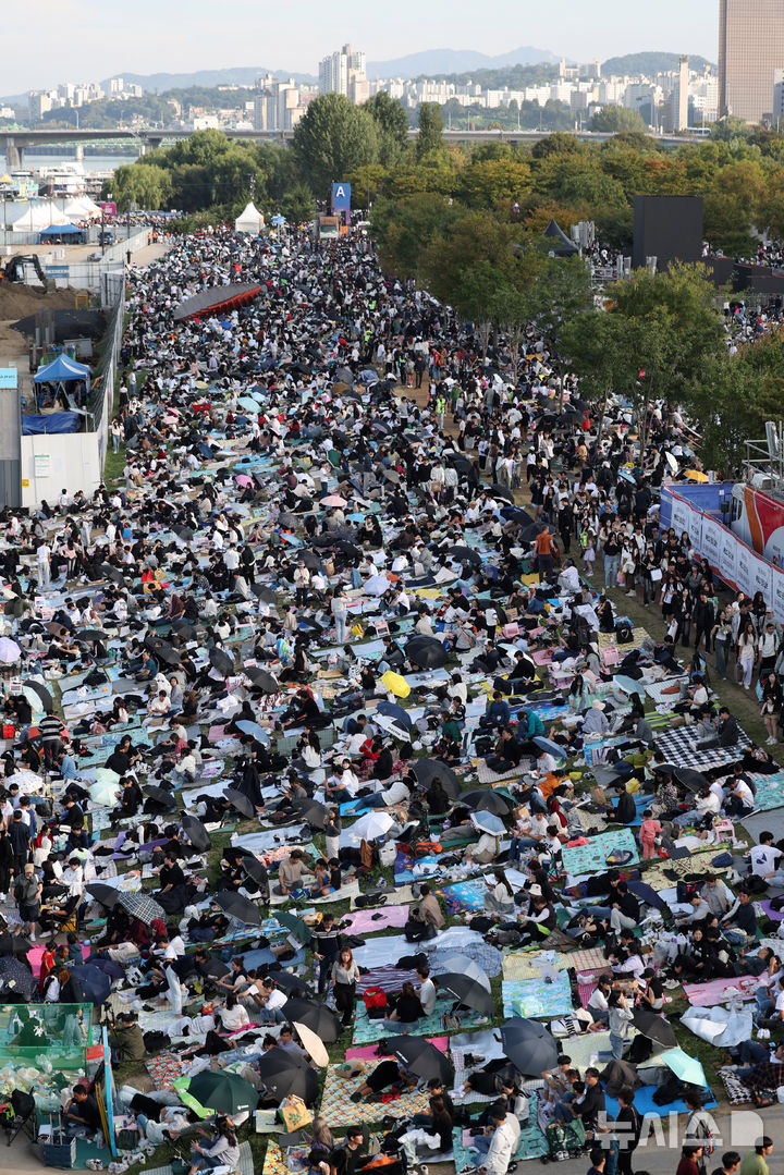 5日、ソウル市永登浦区の汝矣島漢江公園は「2024 ソウル世界花火祭り」を訪れた人々で混み合っていた。
