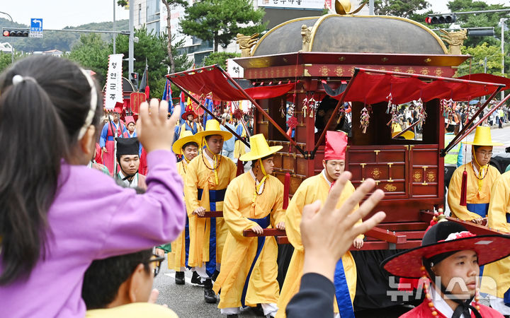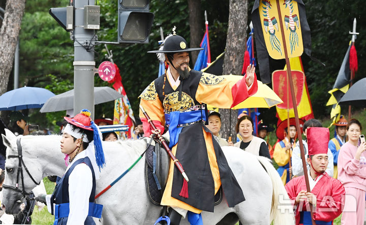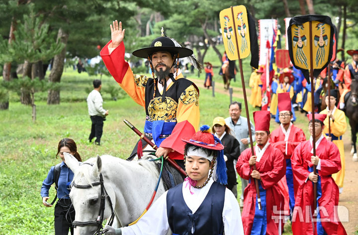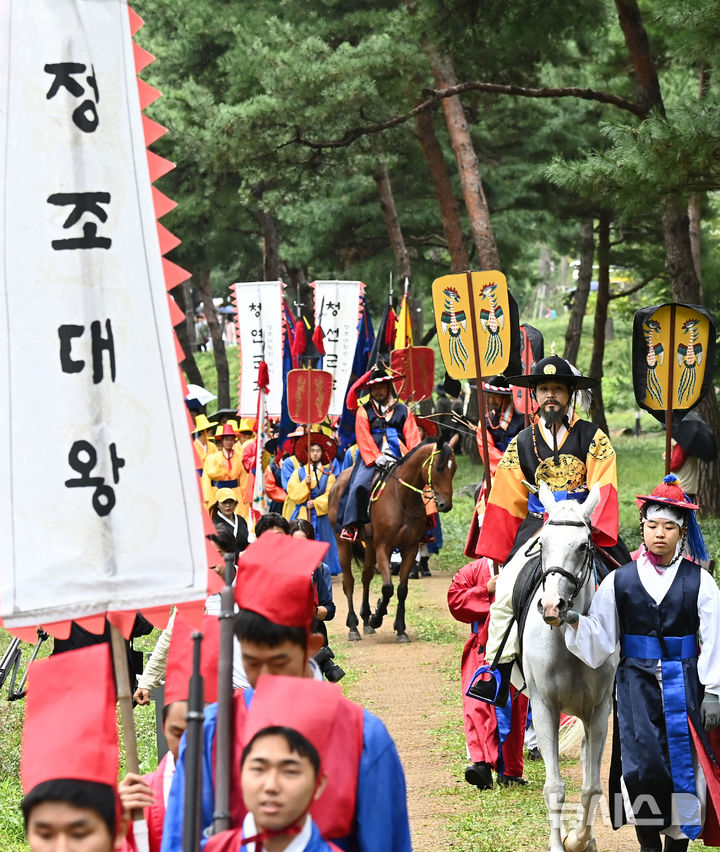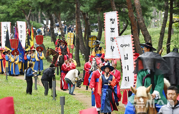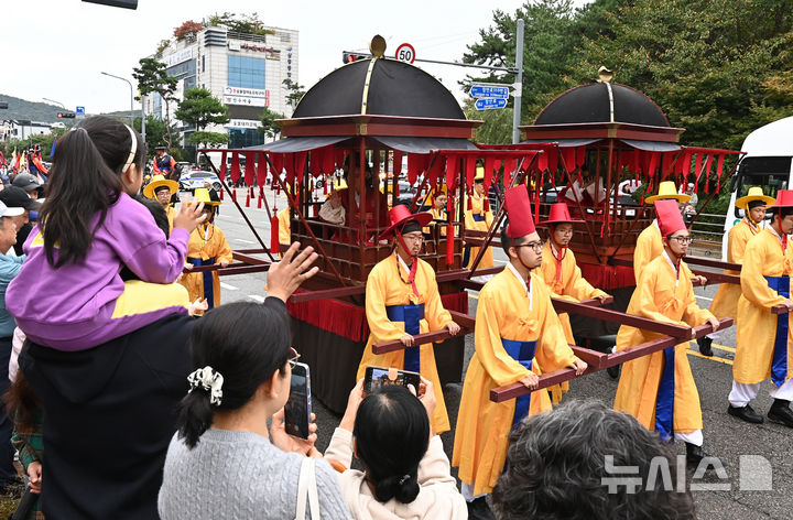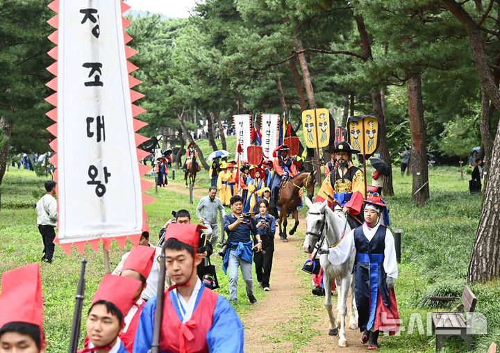 【NEWSIS】6日、朝鮮時代の王室パレードである「正祖大王陵行幸」が京畿道水原市内の老松地帯を通る様子。