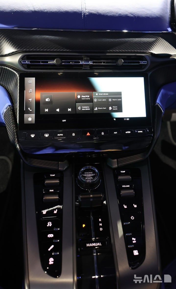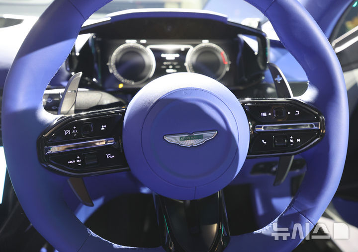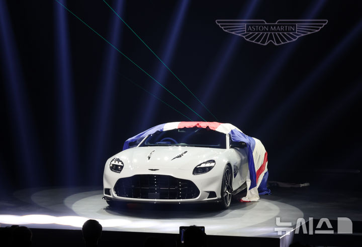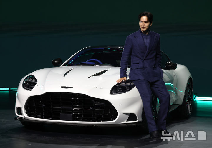 11日午前、仁川市西区のインスパイア・アリーナで、俳優イ・ジヌクがアストンマーチンのフラッグシップモデルである新型ヴァンキッシュの傍らでポーズを取っている様子。