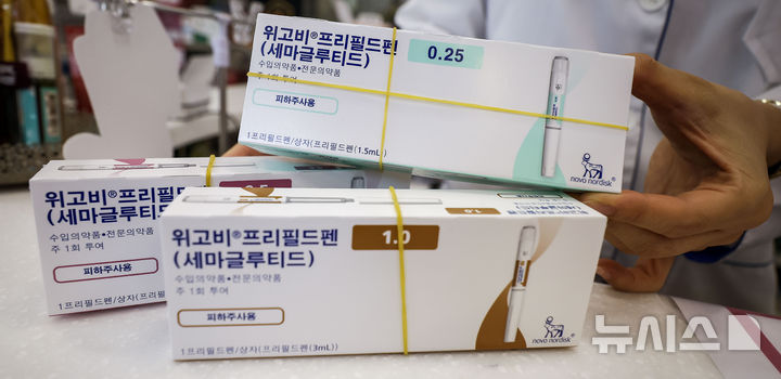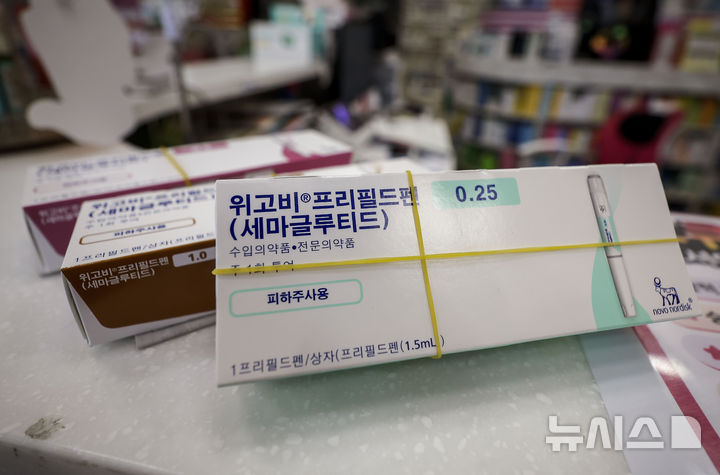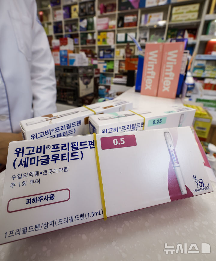 【NEWSIS】17日、ソウル市江南区の薬局に、デンマークの製薬会社ノボ・ノルディスク・ファーマが開発した肥満症治療薬「ウゴービ」が並んだ。「ウゴービ」はペン型注射1本を週1回、1カ月間(4週間)ずつ投与するよう開発された肥満症治療薬。医師が処方した後に薬剤師の調剤・服薬指導の下に使用できる専門医薬品だ。