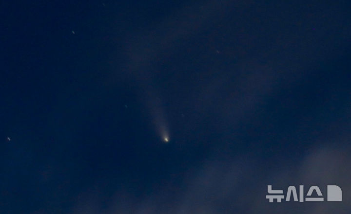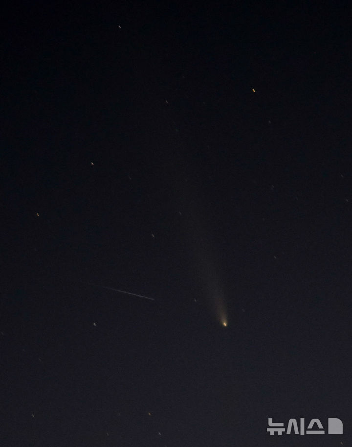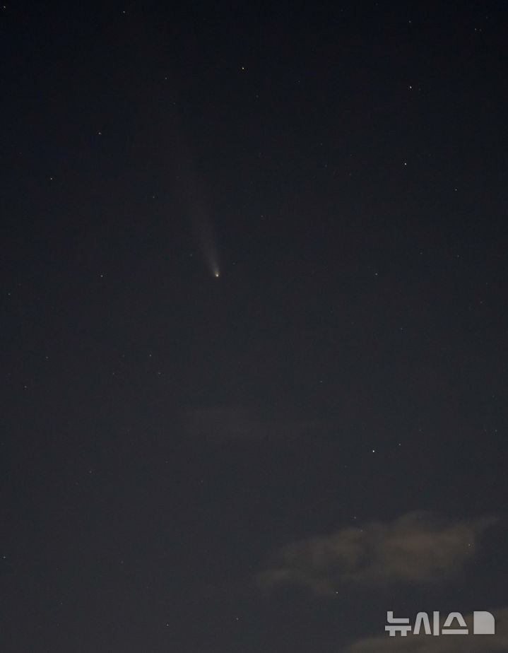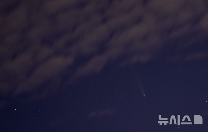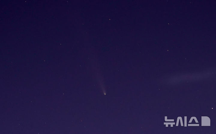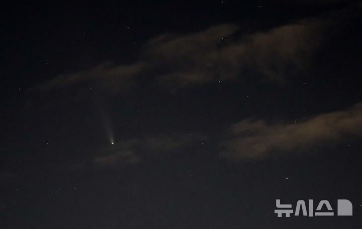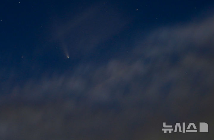 18日午後、済州市内から眺めた西の空に、紫金山・アトラス彗星(C/2023 A3)が浮かんでいた。