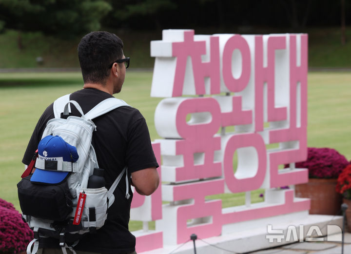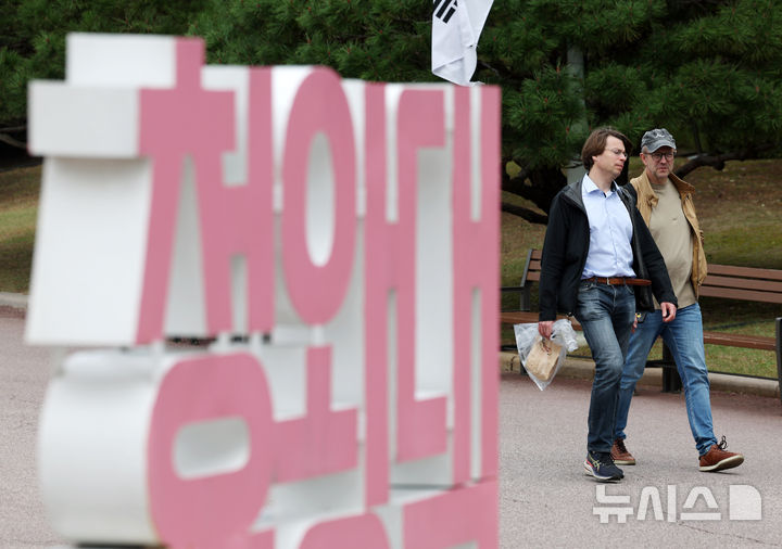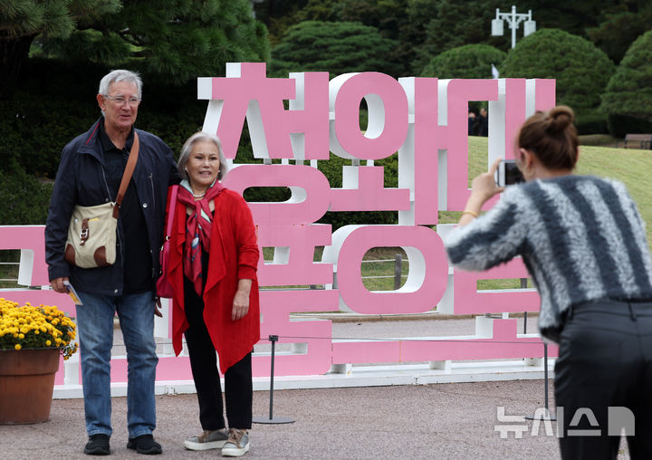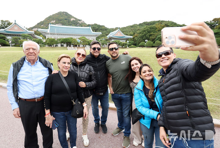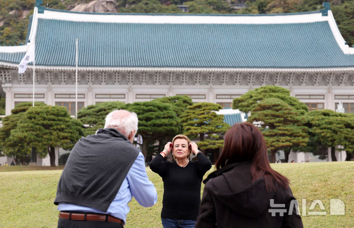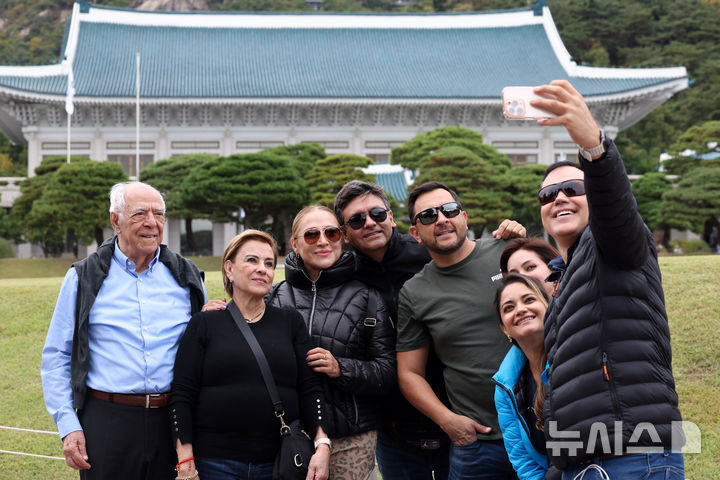 ソウル市鍾路区の青瓦台で21日午後、外国人観光客らが記念撮影をしている様子。青瓦台財団によると、2024年9月現在、青瓦台を訪問した外国人の割合が観覧客全体のうちおよそ29.1%を占めているという。開放初期の2022年5月には外国人観光客がおよそ1600人に過ぎなかったが、今年9月には5万7000人に迫り、約37倍増えた。外国人観光客は通算60万人で、観覧客全体(638万人)のうち9%に当たる。