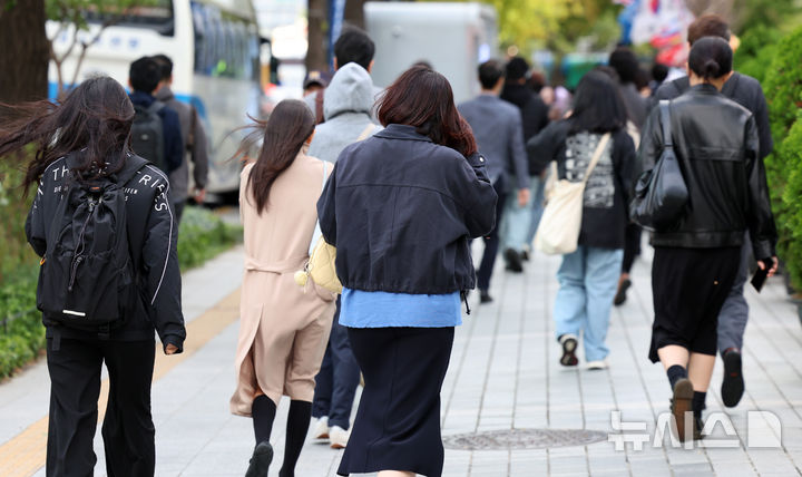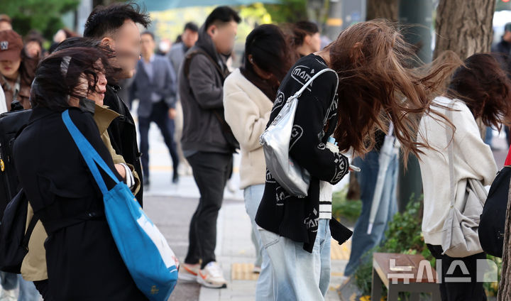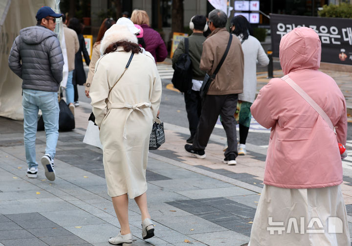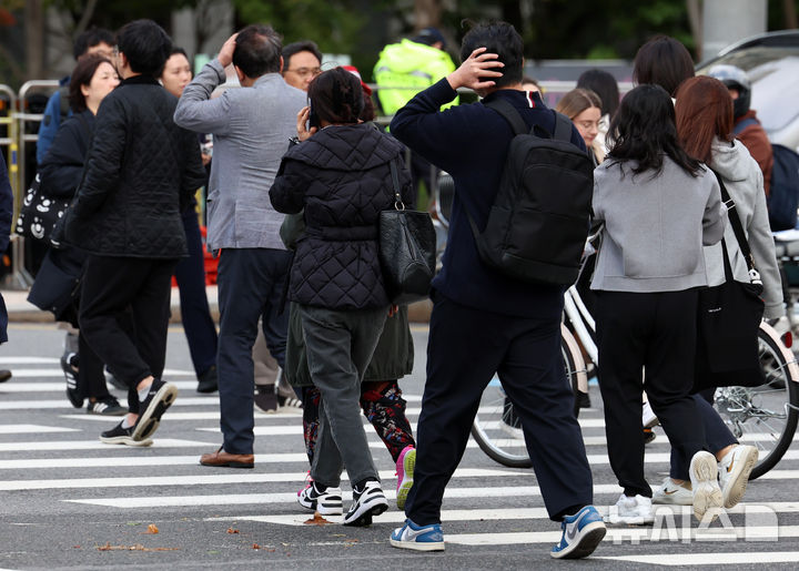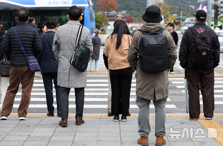 霜が降り始めるという二十四節気の「霜降」に当たる23日午前、ソウル市中区の世宗大路では、冷たい風が吹く中、バスを待つ市民たちの姿が見られた。