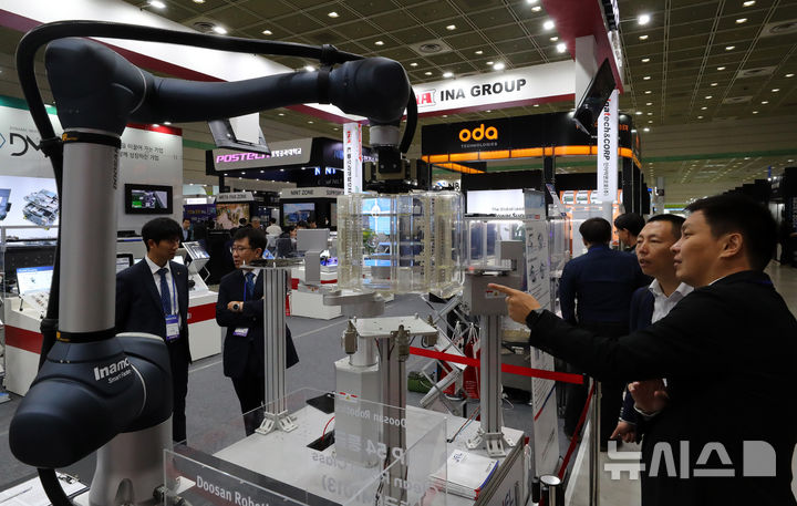 23日、ソウル市江南区のCOEXで開かれた第26回半導体大展(SEDEX2024)で、訪れた人々がブースを見て回っている様子。