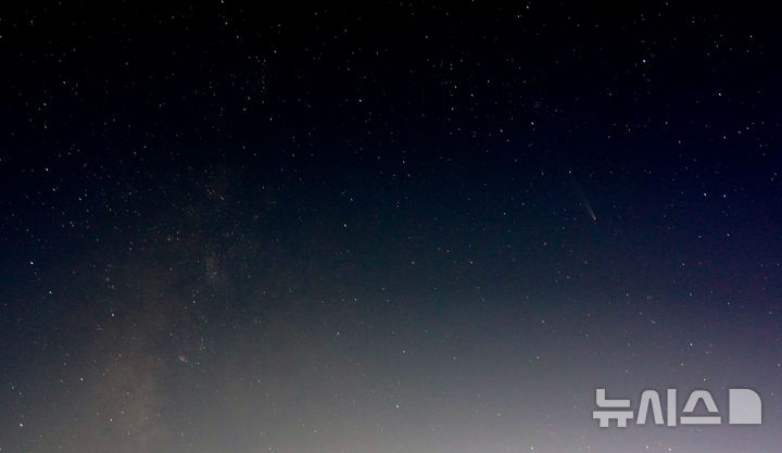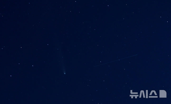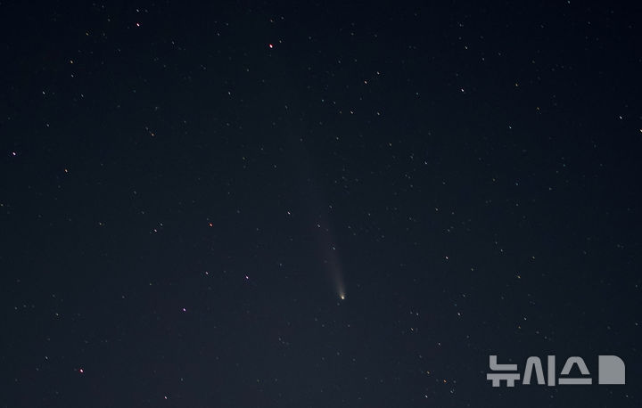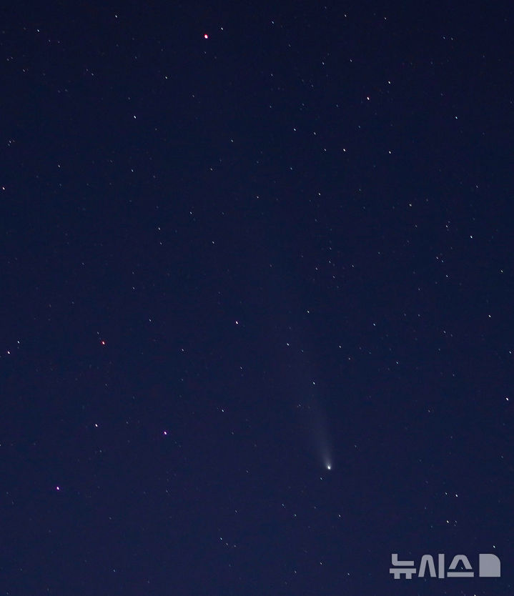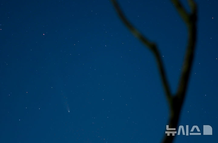 【NEWSIS】24日午後、済州市のセビョルオルム(暁星岳)から見て西の空に現れた「紫金山(ツチンシャン)・アトラス彗星(C/2023 A3)」。