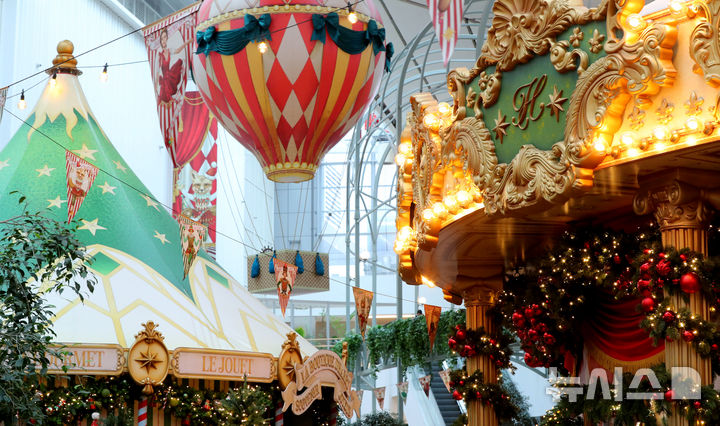 現代百貨店は11月1日から12月31日まで、ザ・現代ソウルをはじめ狎鴎亭店、貿易センター店、板橋店など全国15店舗とコネクト現代釜山で、クリスマス・シーズンを迎えるに当たり「動く大劇場(Le Grand Theatre)」をテーマに装飾。主人公のこぐま・ハリーが最高のショーを繰り広げる「動く大劇場」を見つけるため、熱気球に乗って空高く冒険に出掛けるというストーリーを盛り込んでいる。