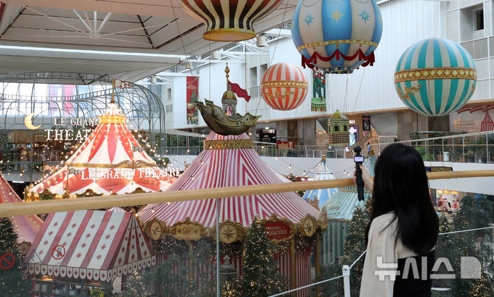 ソウル市永登浦区汝矣島洞のデパート「ザ・現代ソウル」に1日、クリスマスツリーが設置された。