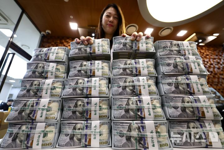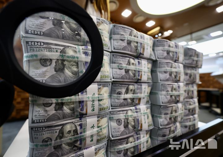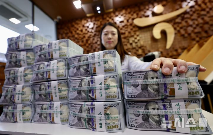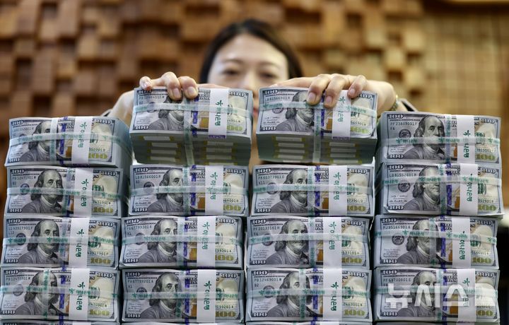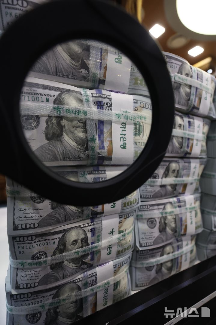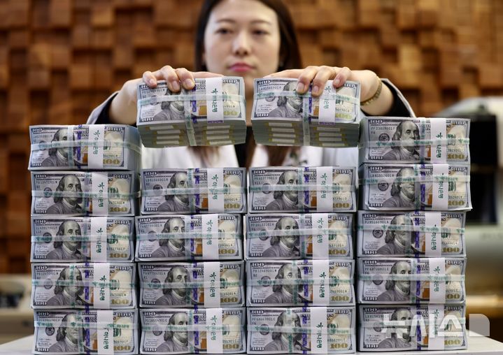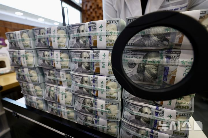 写真は5日午前、ソウル市中区のハナ銀行偽変造対応センターで行員がドル紙幣を整理している様子。