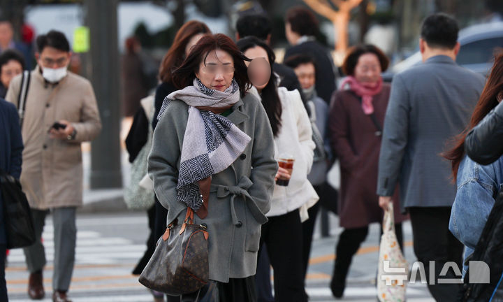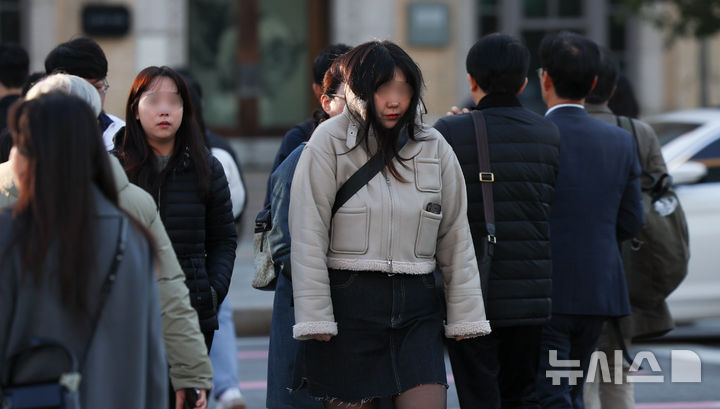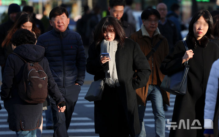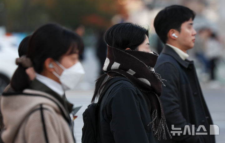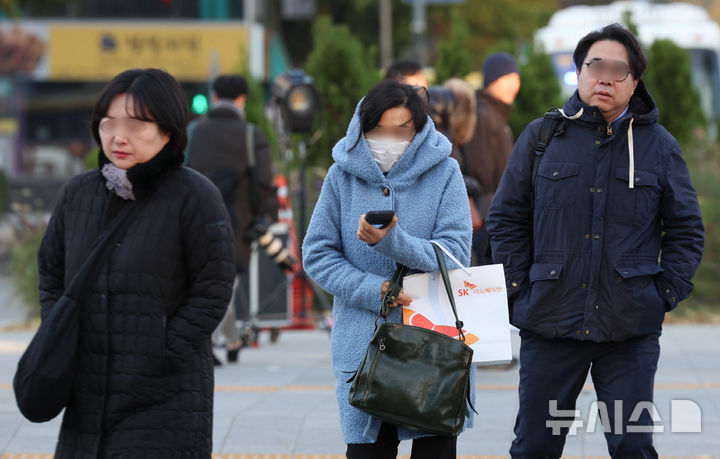 【NEWSIS】二十四節気で冬の始まりとされる「立冬」だった7日午前、ソウル市鍾路区の世宗大路を出勤のため歩く人々。
