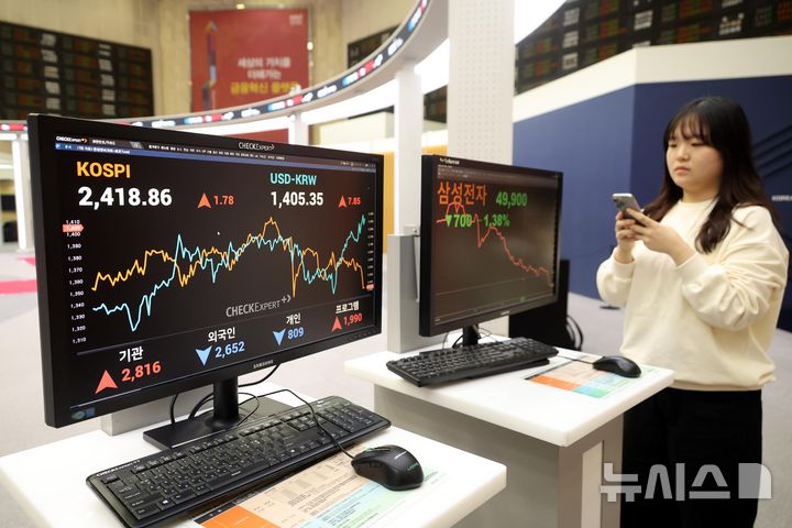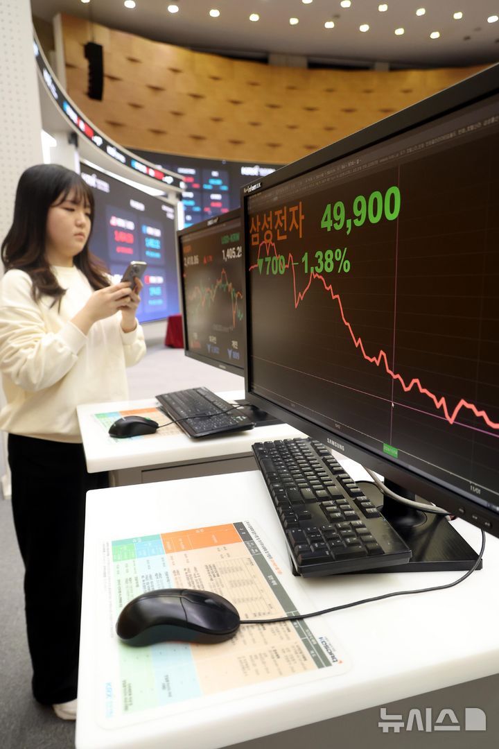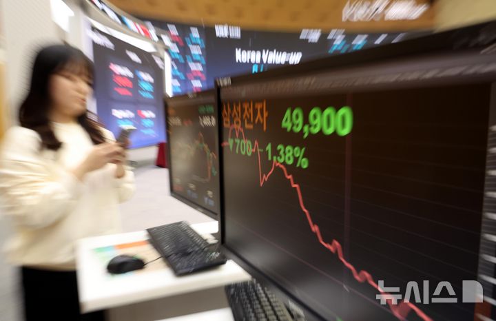 【NEWSIS】14日午後、ソウル・汝矣島の韓国取引所広報館で、モニター画面に表示されたサムスン電子の株価。