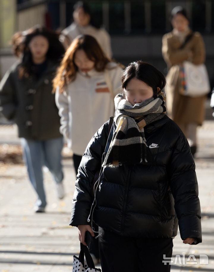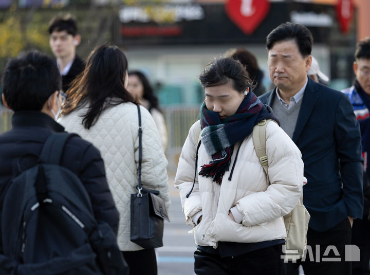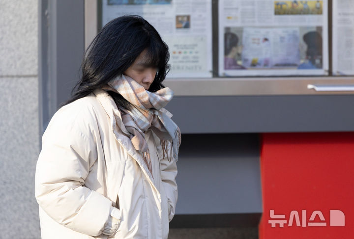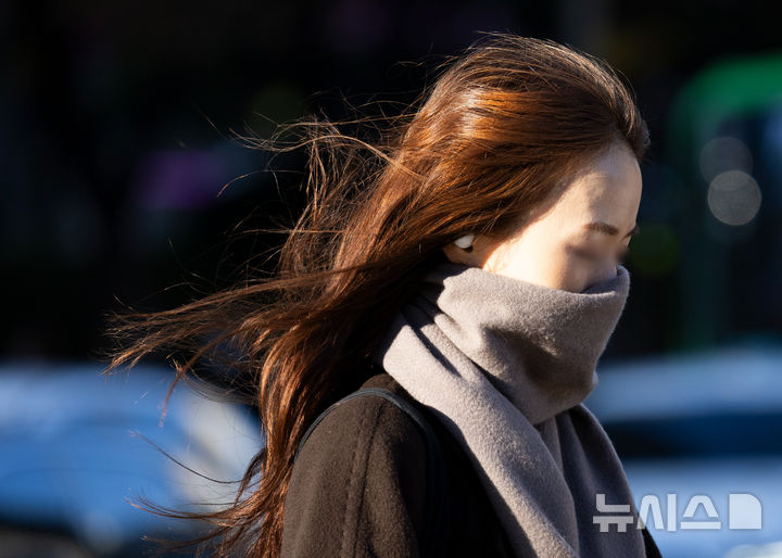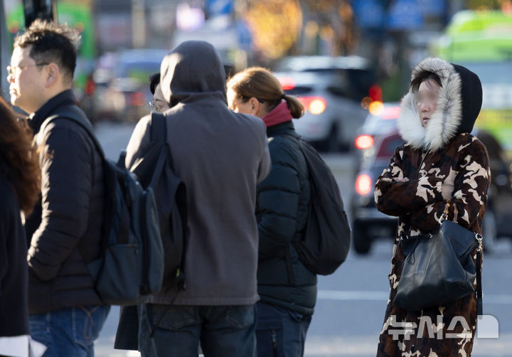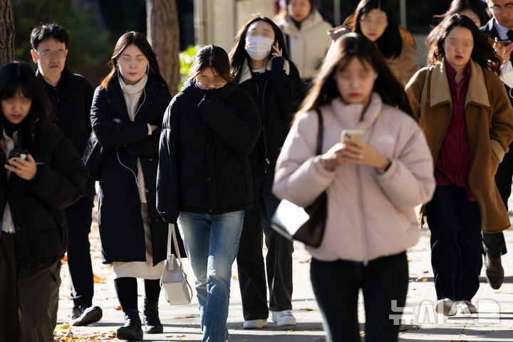 寒さ厳しい一日となった18日、ソウル市中区の世宗大路で出勤を急ぐ市民たちの様子。