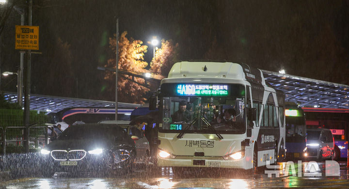 ソウル市道峰区の道峰山駅広域乗り換えセンターで26日午前、「A160番」早朝自動運転バスが出発する様子。