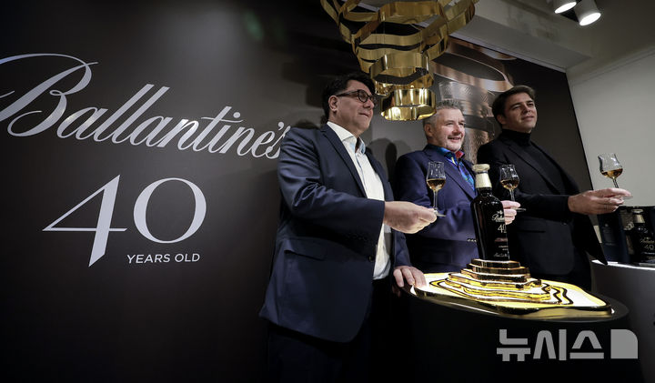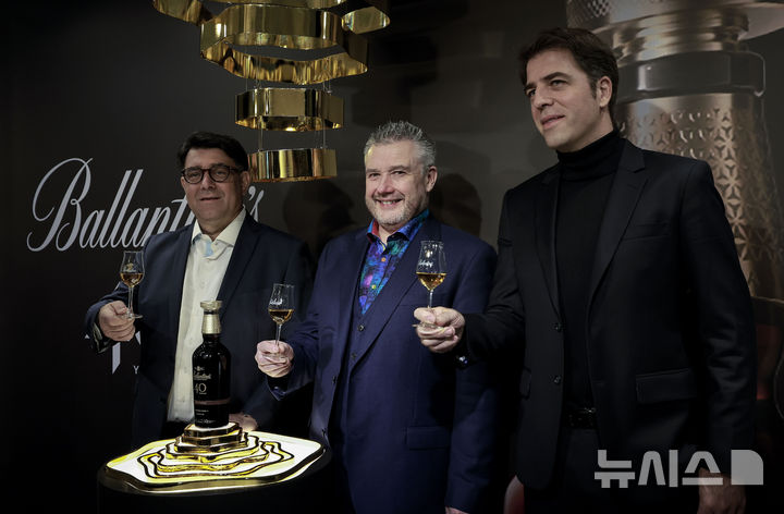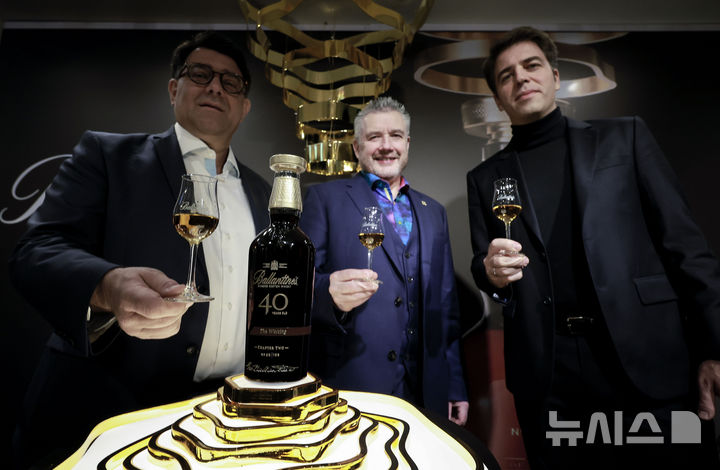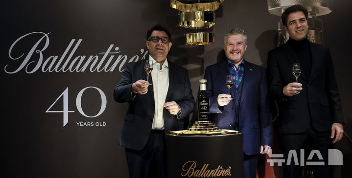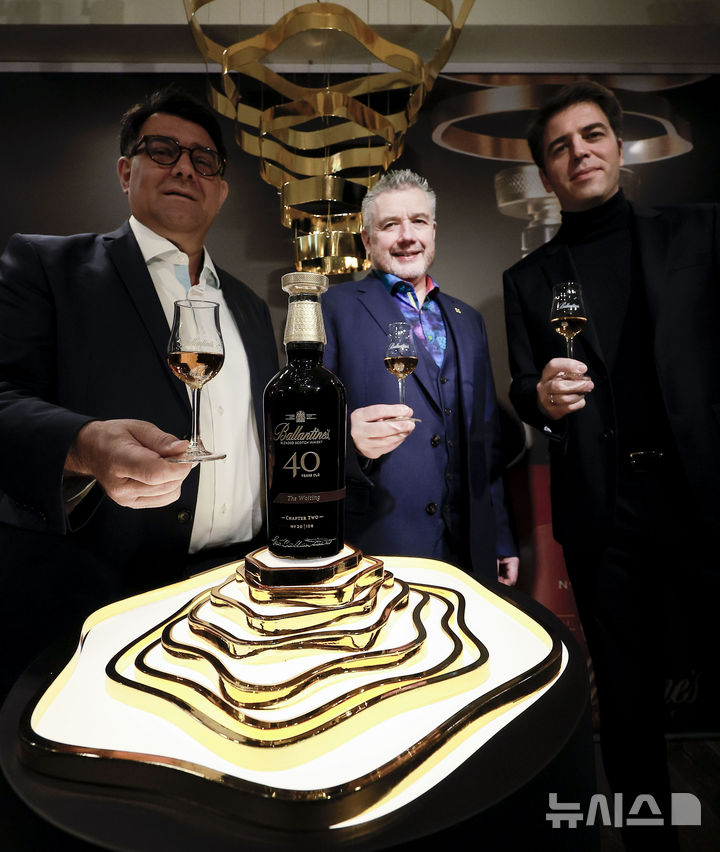 ソウル市江南区のCASA ALEXIS島山店で27日、バランタインの40年物マスタークラス・コレクション「ザ・ウェイティング」発売記念イベントが行われ、ペルノ・リカール・コリアのフランツ・ホートン代表、バランタインのマスターブレンダーを務めるサンディー・ヒスロップ氏、ペルノ・リカール・コリアのミゲル・パスカル・マーケティング専務が「ザ・ウェイティング」を紹介した。