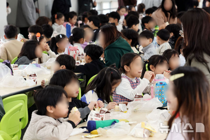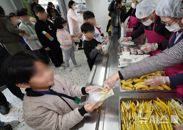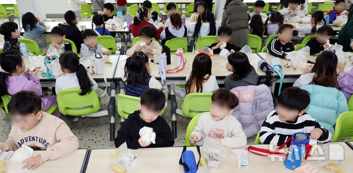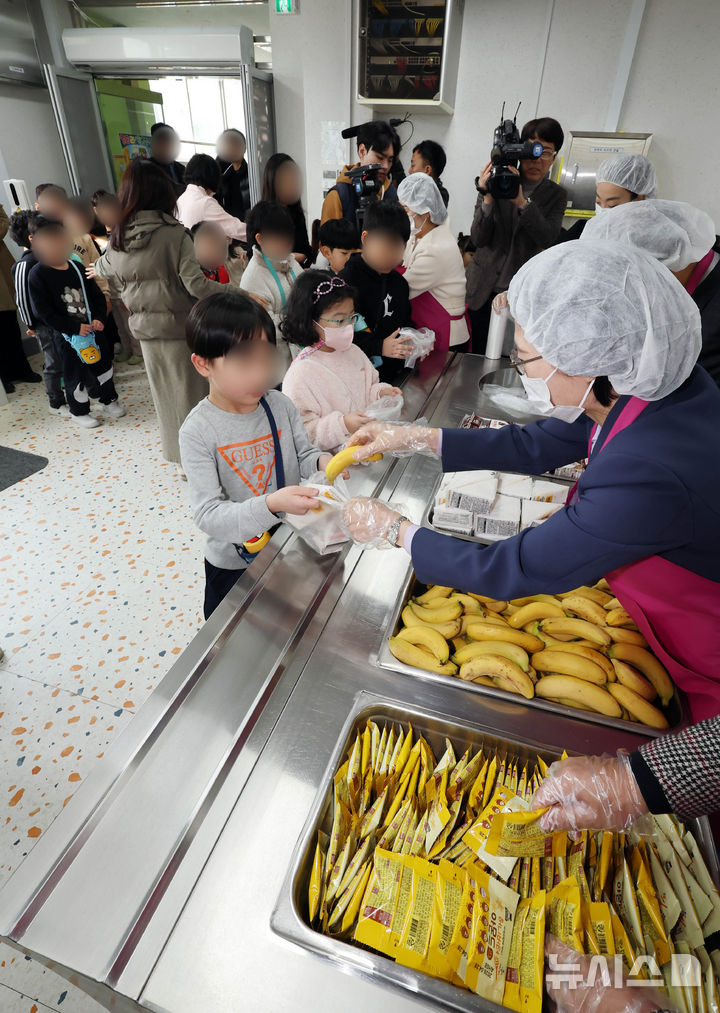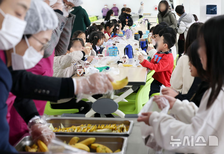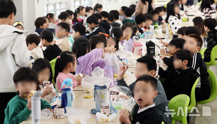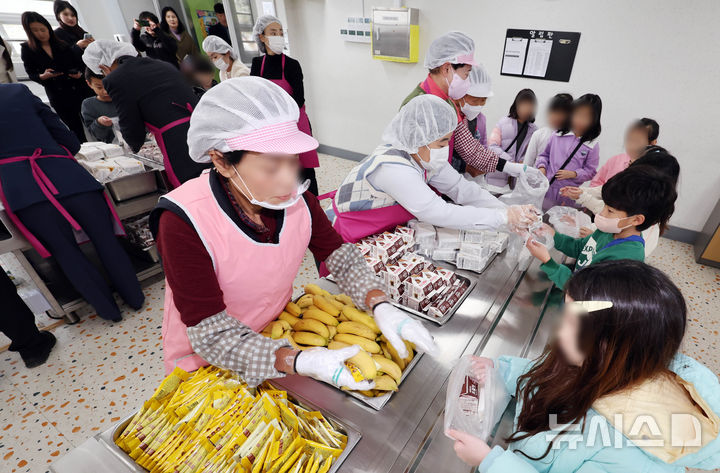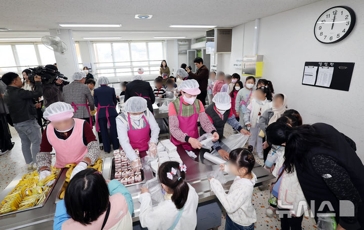 【NEWSIS】全国学校非正規職労働組合・全国教育公務職本部・全国女性労組などからなる全国学校非正規職連帯会議が全面ストに入った6日、釜山市釜山鎮区のある小学校の食堂で、パンと牛乳などの「代替給食」を食べている児童の様子。